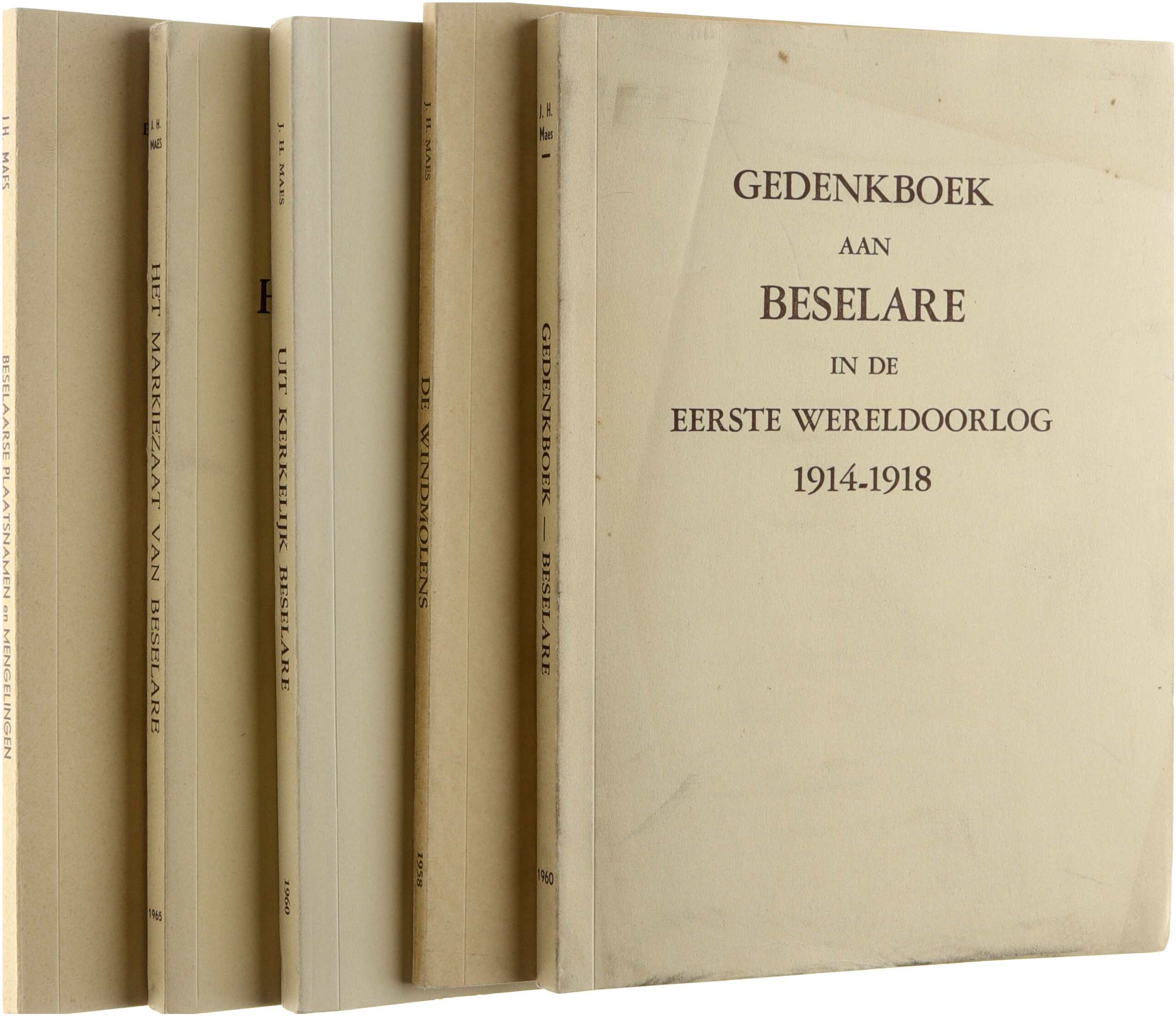 De Beselaarse gedenkboeken vormen een reeks lokale historische studies over het dorp Beselare in West-Vlaanderen, geschreven door J.H. Maes. De vijf delen behandelen uiteenlopende aspecten van de plaatselijke geschiedenis, waaronder de gebeurtenissen tijdens de Eerste Wereldoorlog, het economische en sociale leven met aandacht voor molens, brouwerijen en herbergen, de kerkelijke geschiedenis van de parochie, het markiezaat van Beselare en het geslacht Van der Woestine, en ten slotte de plaatsnamen en andere historische en folkloristische gegevens van het dorp. De reeks biedt een uitgebreide documentatie van het verleden van Beselare, gebaseerd op lokale archieven, mondelinge tradities en heemkundig onderzoek.