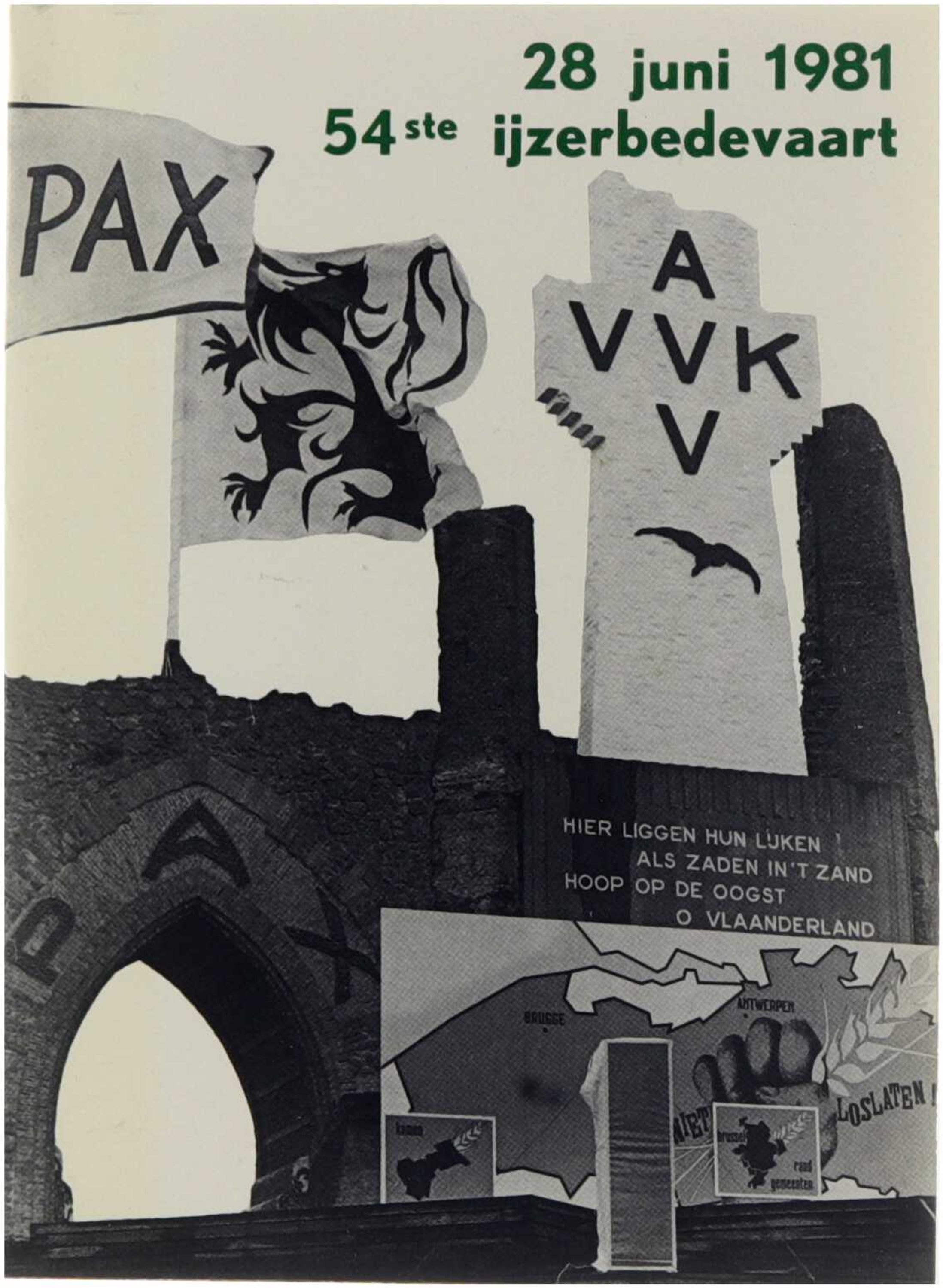 Dit programmaboekje bevat het officiële verloop van de jaarlijkse IJzerbedevaart, gehouden te Kaaskerke-Diksmuide. De publicatie beschrijft de geplande plechtigheden, toespraken en herdenkingsmomenten die centraal staan in de bedevaart naar het IJzerfront, traditioneel aangeduid als “Vlaanderens doodenveld”. Het programma kadert binnen de naoorlogse voortzetting van de IJzerbedevaart als collectieve herdenkingsmanifestatie ter nagedachtenis van de Vlaamse gesneuvelden van de Eerste Wereldoorlog en weerspiegelt de blijvende symbolische betekenis van herinnering, rouw en culturele verbondenheid.