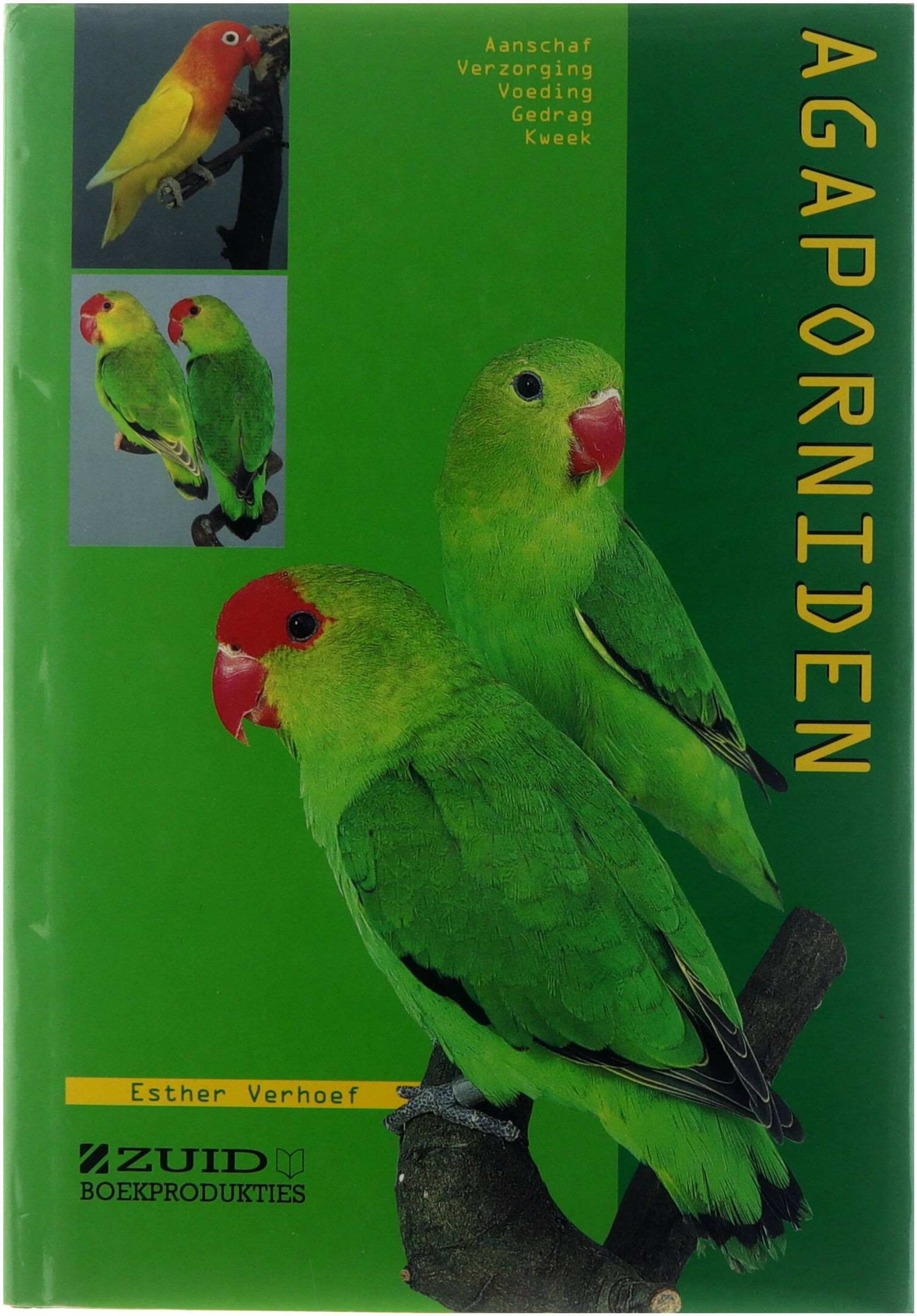 Agaporniden van Esther Verhoef is een praktisch en informatief naslagwerk dat zich richt op de verzorging, voeding, kweek en gedragskenmerken van agaporniden, ook bekend als lovebirds. Het boek behandelt de verschillende soorten en mutaties van deze kleine Afrikaanse papegaaien, geeft advies over het opzetten van een geschikte leefomgeving, sociale interactie en het herkennen van gezondheidsproblemen, en biedt richtlijnen voor het fokken en het begrijpen van het natuurlijke gedrag van deze vogels. Met heldere uitleg en afbeeldingen is het bedoeld voor zowel beginnende als ervaren vogelliefhebbers die hun kennis over agaporniden willen verdiepen.