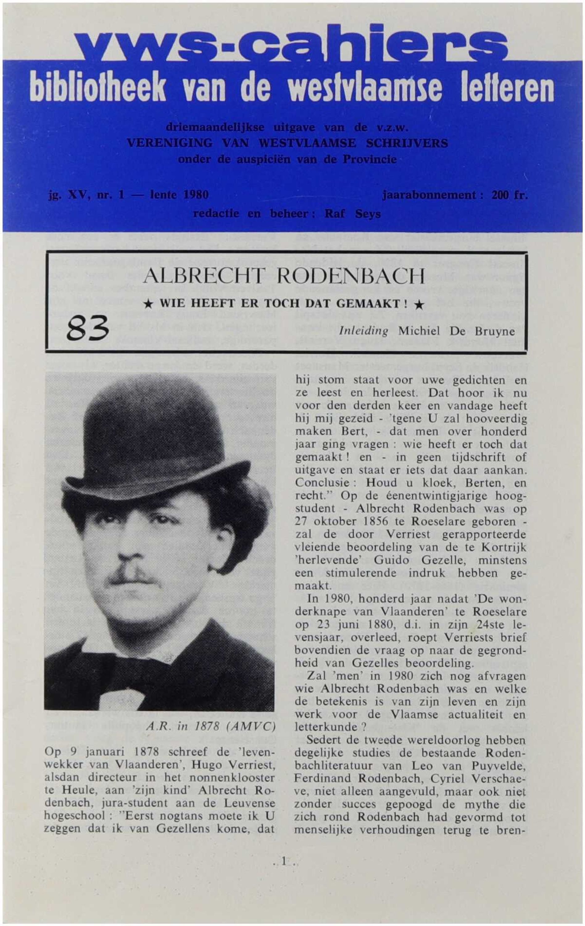 VWS-cahiers. Bibliotheek van de Westvlaamse letteren (83)