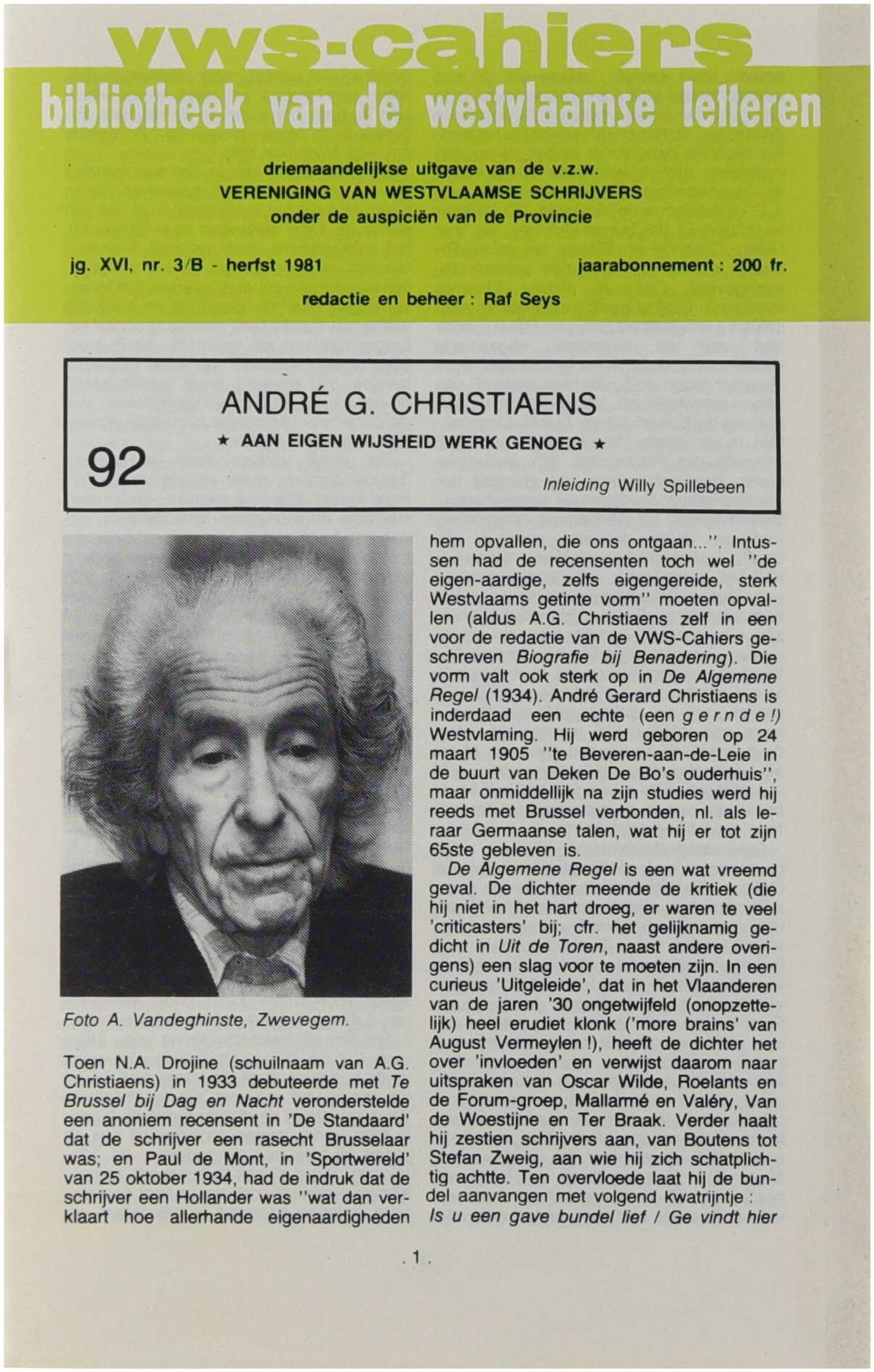 VWS-cahiers. Bibliotheek van de Westvlaamse letteren (92)