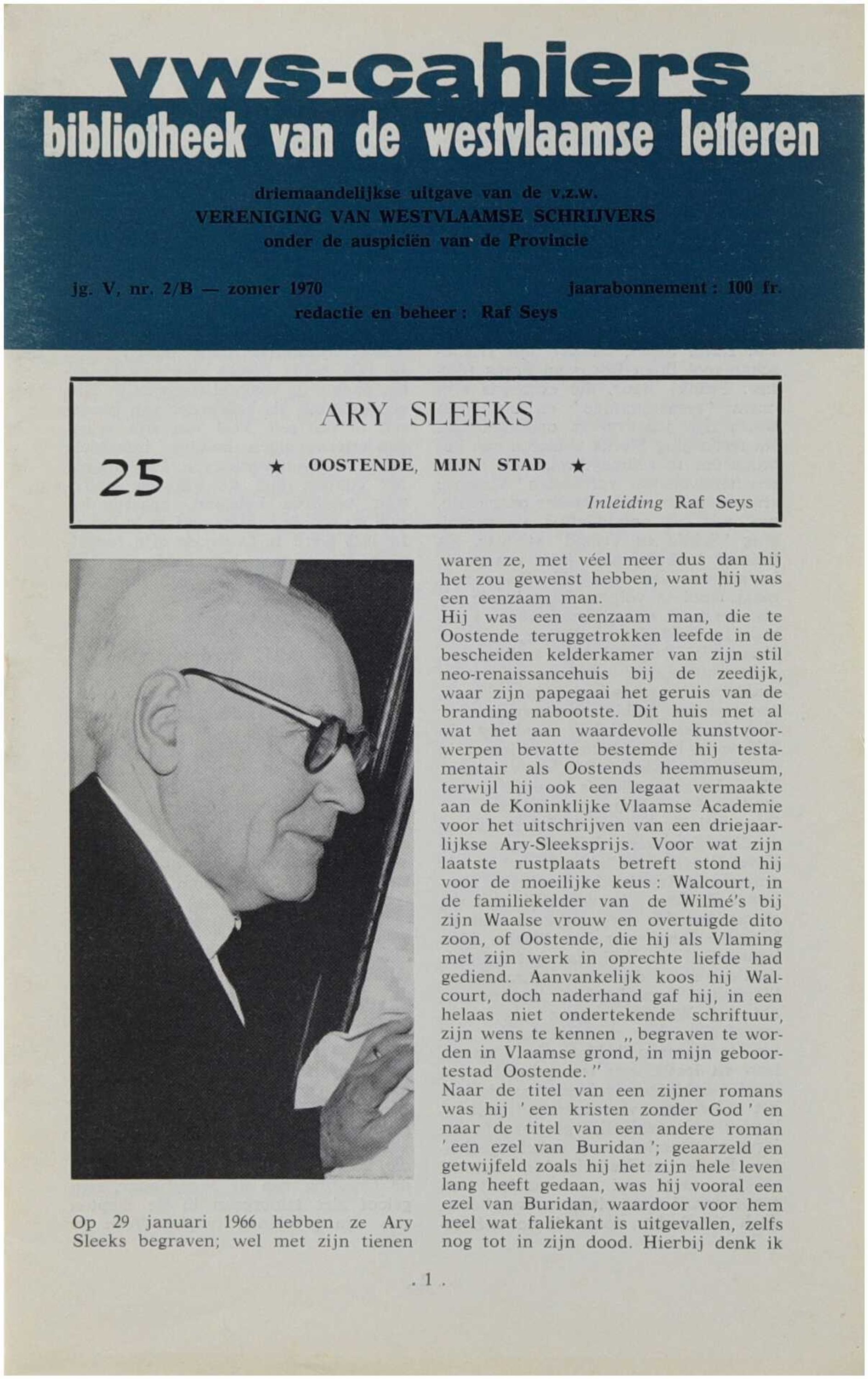 Dit cahier is gewijd aan het leven en het literaire oeuvre van een West-Vlaamse schrijver en biedt een biografisch en kritisch overzicht van diens betekenis binnen de regionale en Vlaamse literatuur. Aan de hand van levensgegevens, thematische bespreking en situering binnen de literaire context wordt het schrijverschap belicht, met aandacht voor stijl, thematiek en culturele achtergrond. De uitgave kadert binnen de doelstelling van de VWS-cahiers om het literaire erfgoed van West-Vlaanderen te documenteren en toegankelijk te maken.
