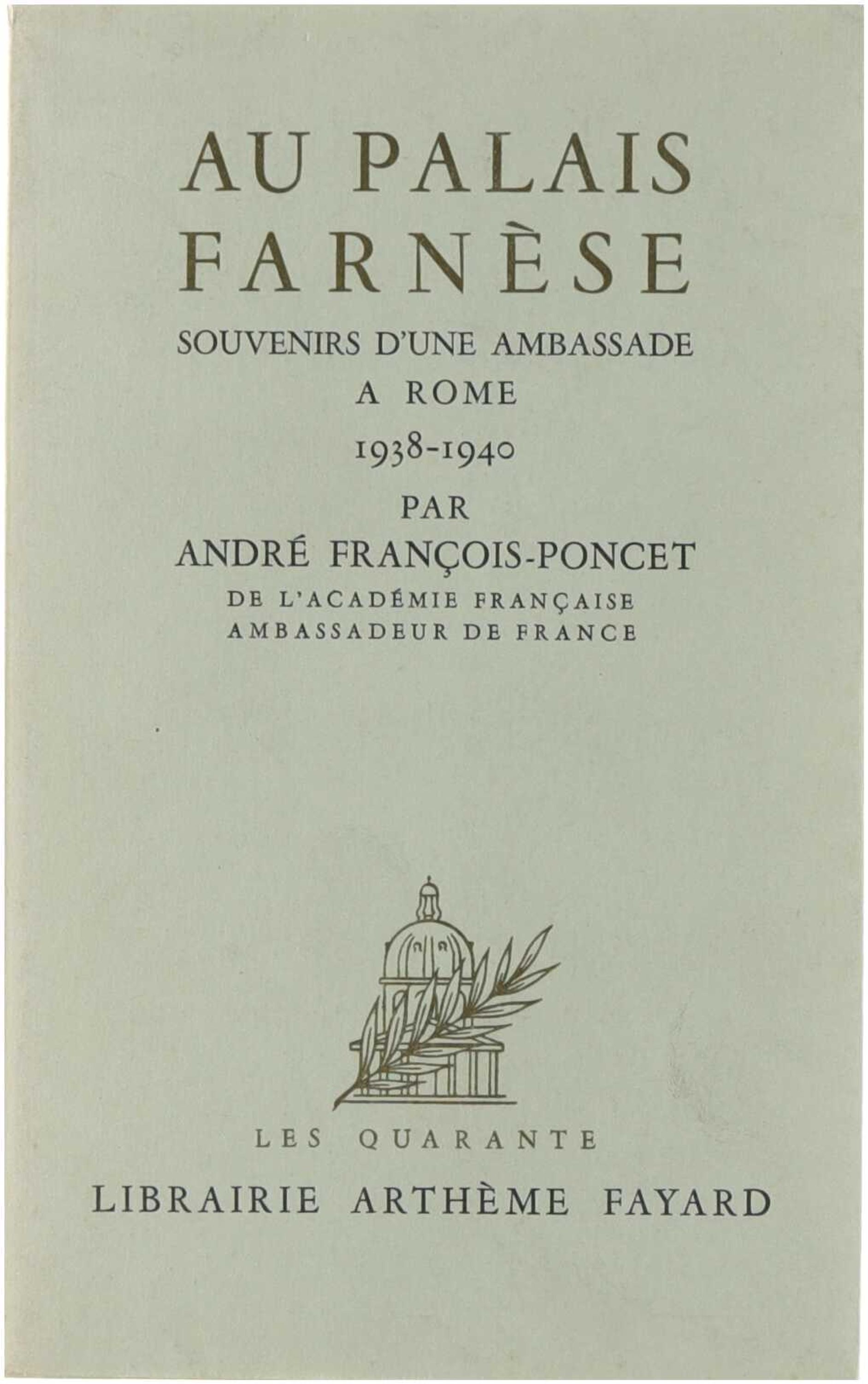Au Palais Farnèse. Souvenirs d'une Ambassade a Rome 1938-1940