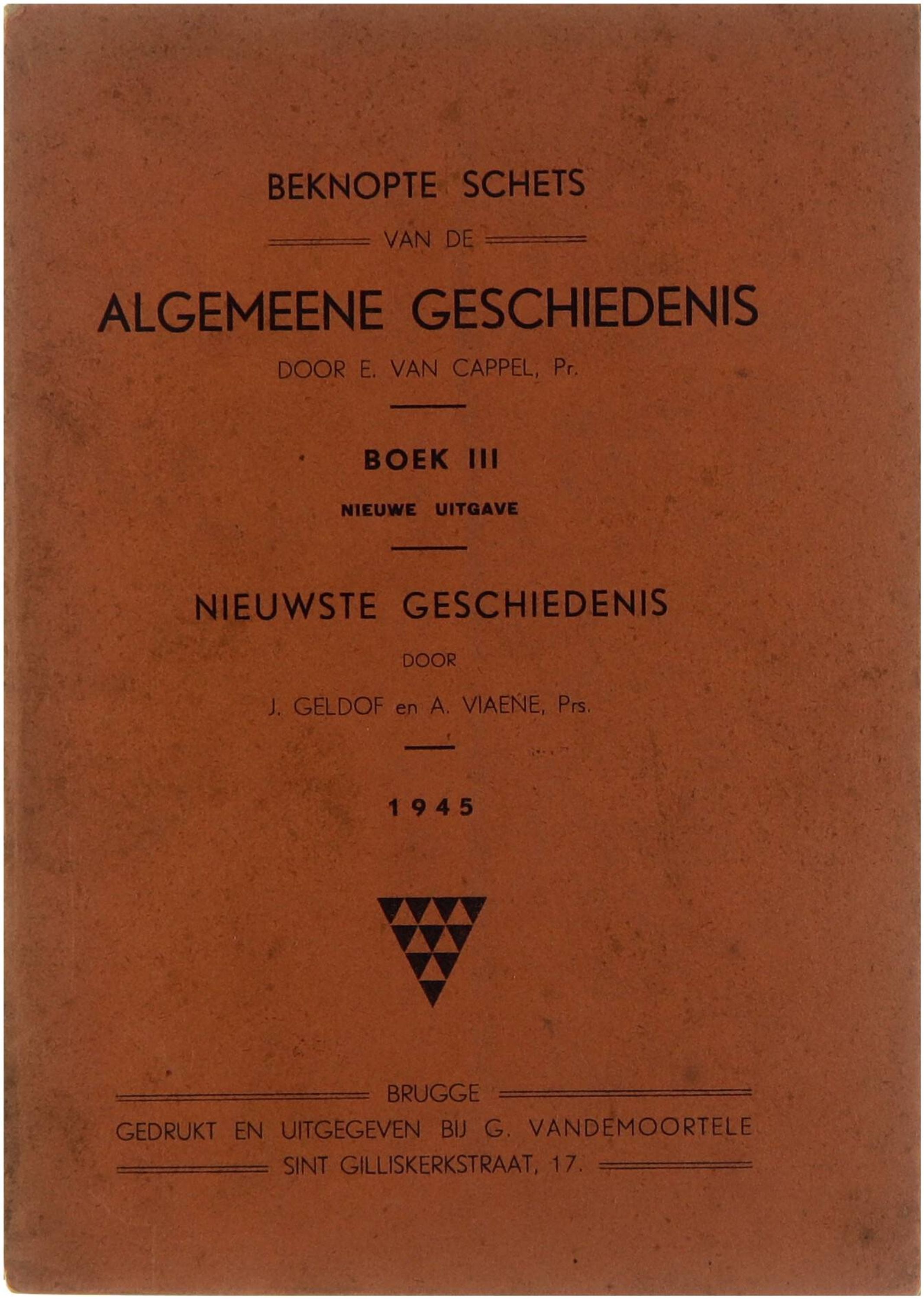 Dit derde boekdeel van de Beknopte schets van de algemeene geschiedenis behandelt de nieuwste geschiedenis en was bedoeld als leerboek voor het middelbaar onderwijs. Het werk biedt een overzicht van de politieke, sociale en economische ontwikkelingen van de moderne tijd, met bijzondere aandacht voor de gebeurtenissen van de 19e en vroege 20e eeuw. De auteurs structureren de leerstof chronologisch en didactisch, met aandacht voor kernbegrippen en belangrijke historische figuren, passend binnen het katholieke onderwijs van het midden van de 20e eeuw.