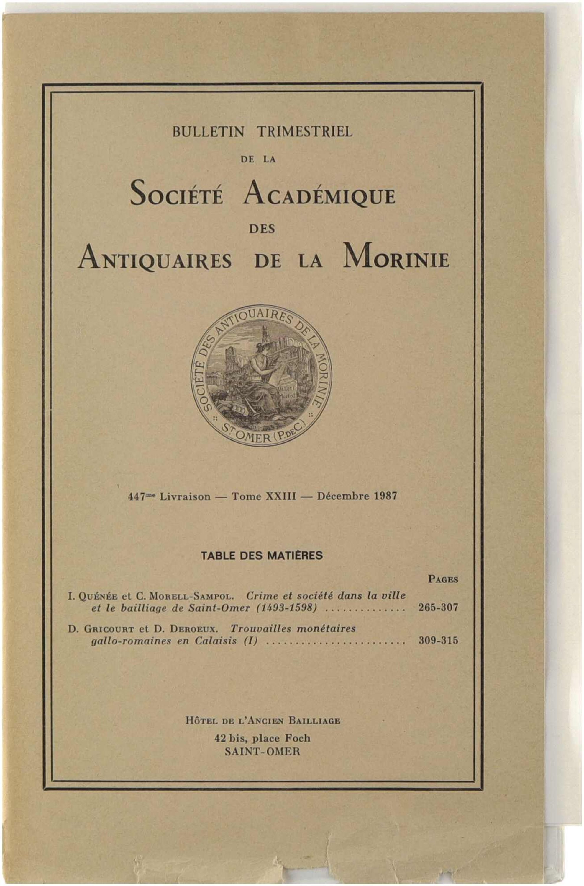 Bulletin trimestriel de la société académique des antiquaires de la Morinie Décembre 1987