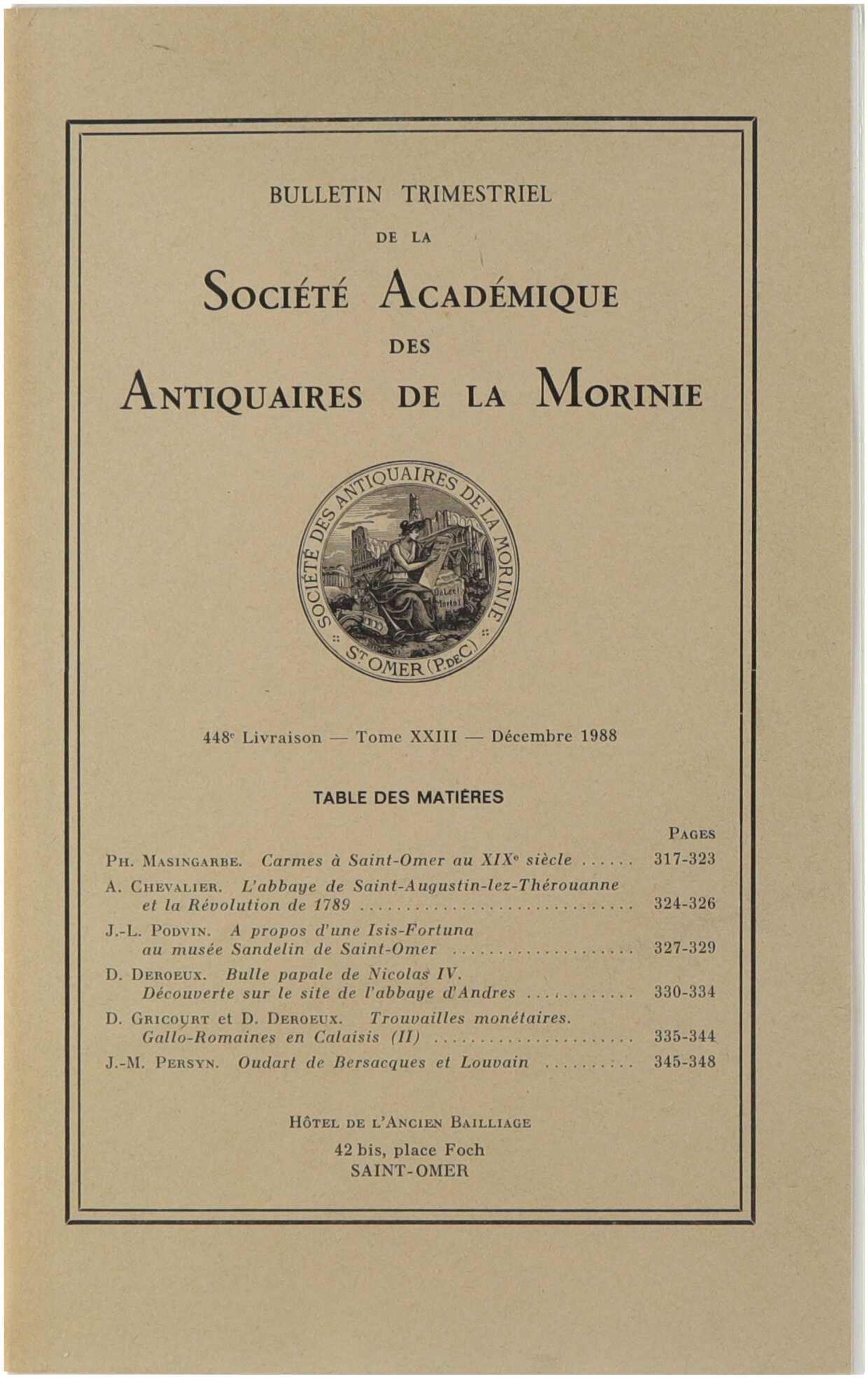 Bulletin trimestriel de la société académique des antiquaires de la Morinie Décembre 1988