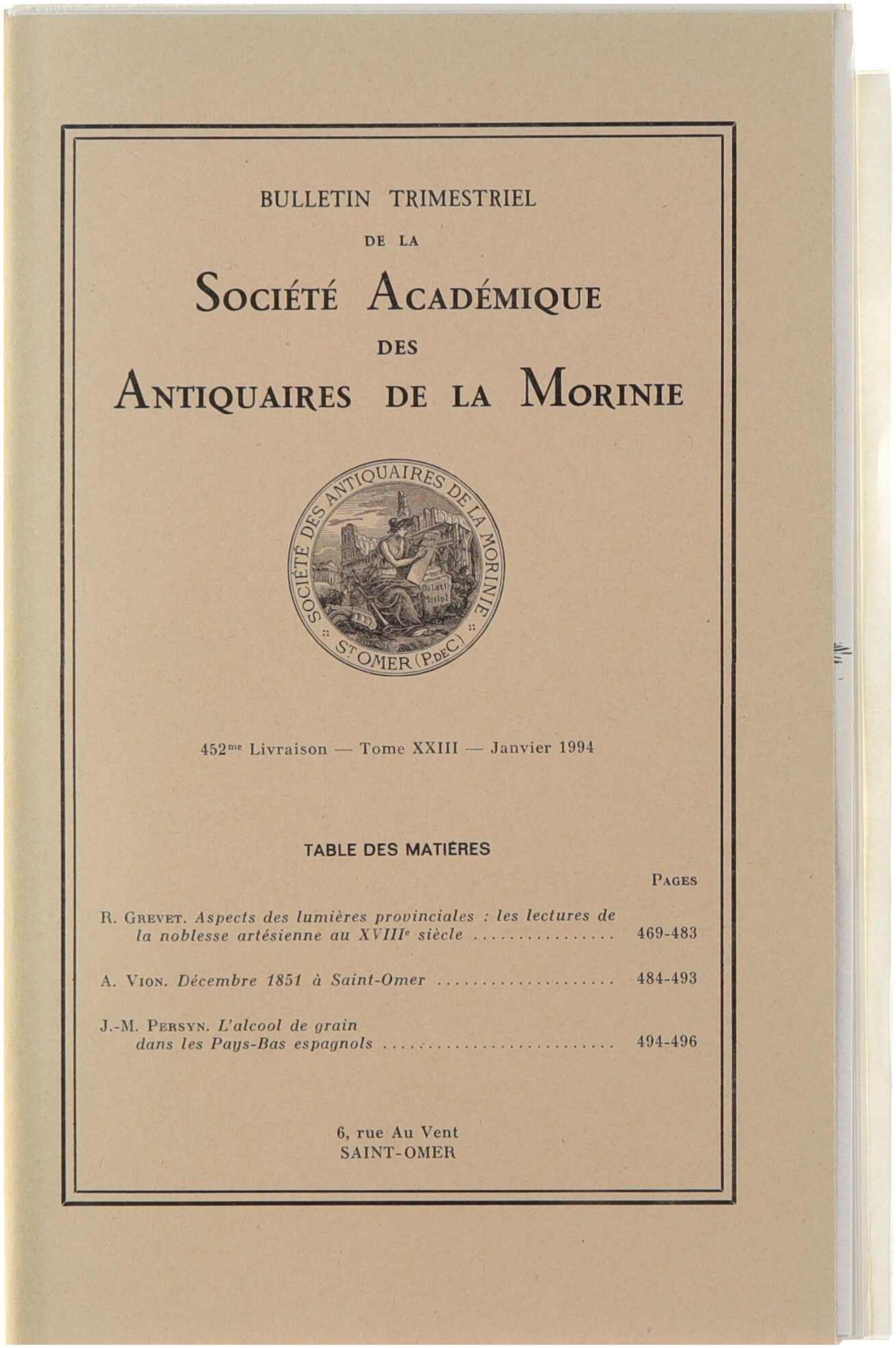 Bulletin trimestriel de la société académique des antiquaires de la Morinie Janvier 1994