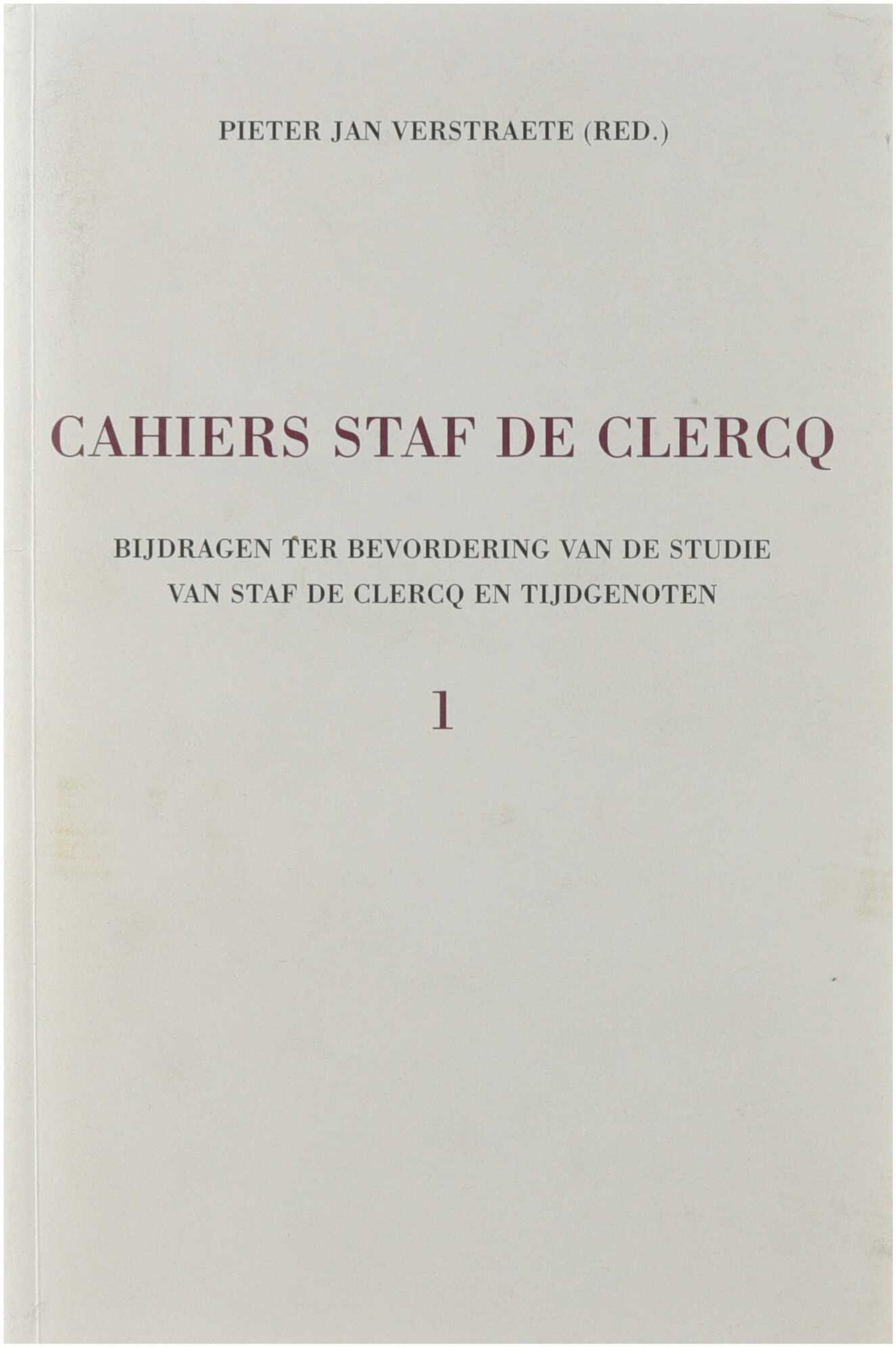 Cahiers Staf De Clercq. Bijdragen ter bevordering van de studie van Staf De Clercq en tijdgenoten. Deel 1
