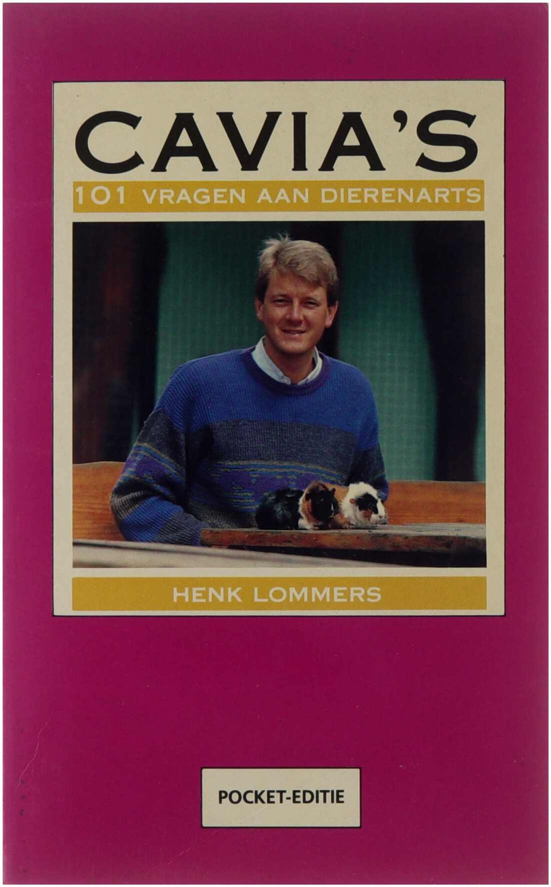 Cavia's: 101 vragen aan dierenarts Henk Lommers biedt een praktische en toegankelijke gids voor zowel beginnende als ervaren caviahouders, waarin veelgestelde vragen over verzorging, voeding, gezondheid en gedrag worden beantwoord. Het boek behandelt onderwerpen zoals huisvesting, dagelijkse verzorging, het herkennen van ziekteverschijnselen, preventieve gezondheidsmaatregelen en het omgaan met noodsituaties. Het onderscheidt zich door de vraag-en-antwoordstructuur die direct inspeelt op de dagelijkse problemen en onzekerheden van cavia-eigenaren, waardoor het zowel informatief als praktisch bruikbaar is. De inhoud weerspiegelt de kennis en ervaring van een dierenarts die gespecialiseerd is in kleine huisdieren, en plaatst het in de context van de jaren ’90, toen er nog relatief weinig Nederlandstalige, toegankelijke literatuur over cavia’s beschikbaar was.