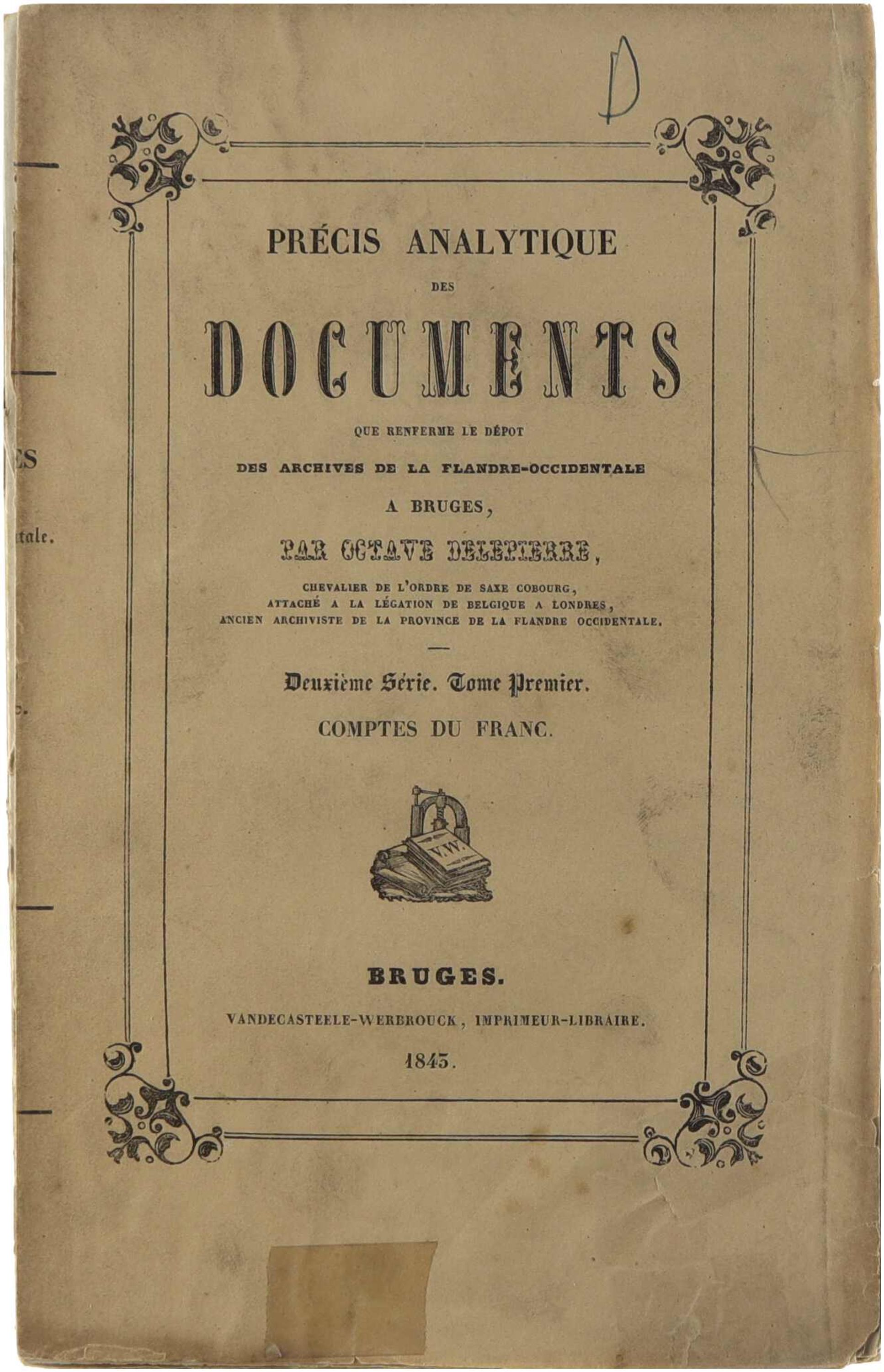 Précis analytiques des documents que renferme le dépôt des archives de la flandre-occidentale à Bruges (Deuxième Série - Tome premier)