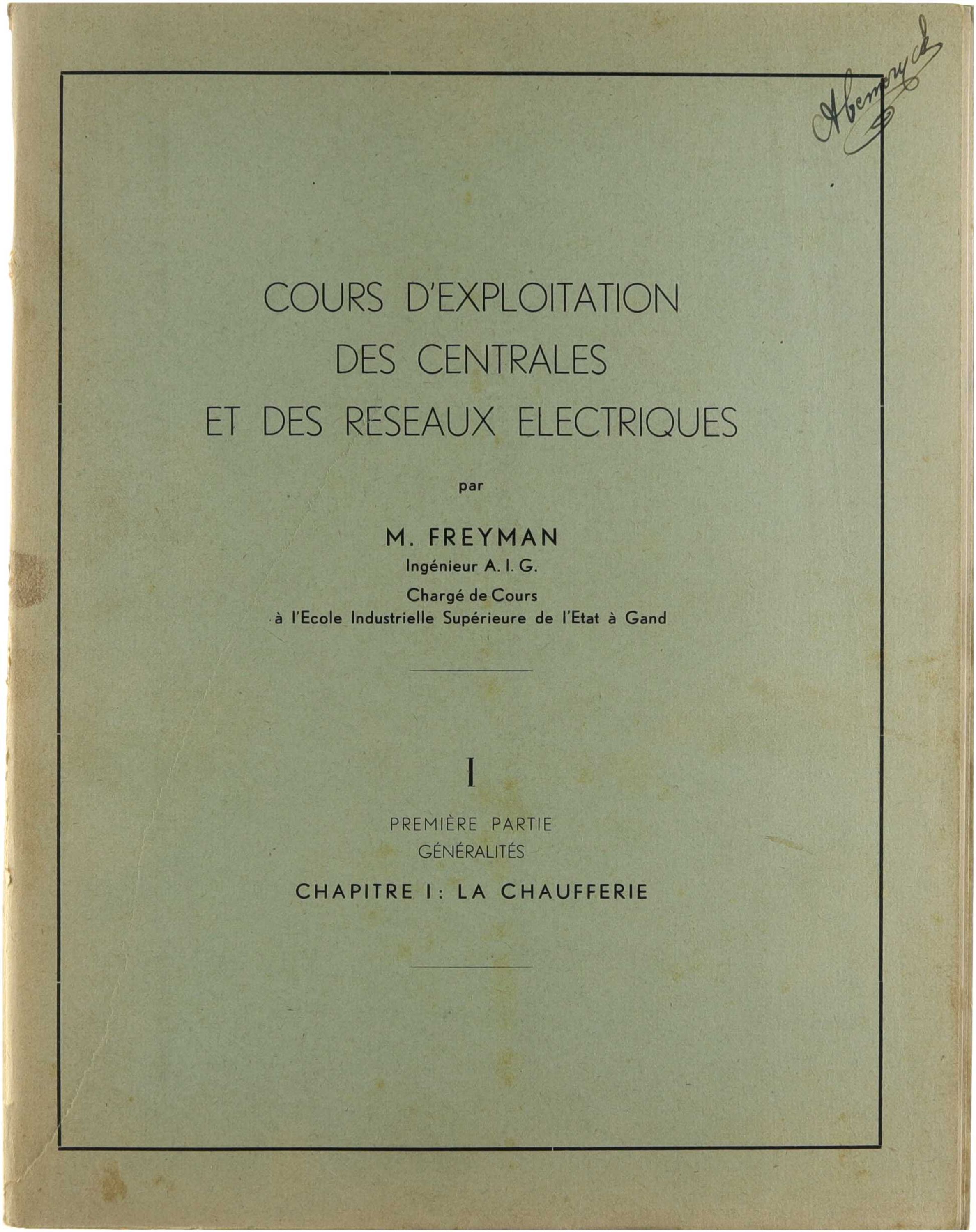 Cours d'Exploitation des Centrales et des Reseaux Electriques I. Première partie : Généralités. Chapitre I. : La Chaufferie