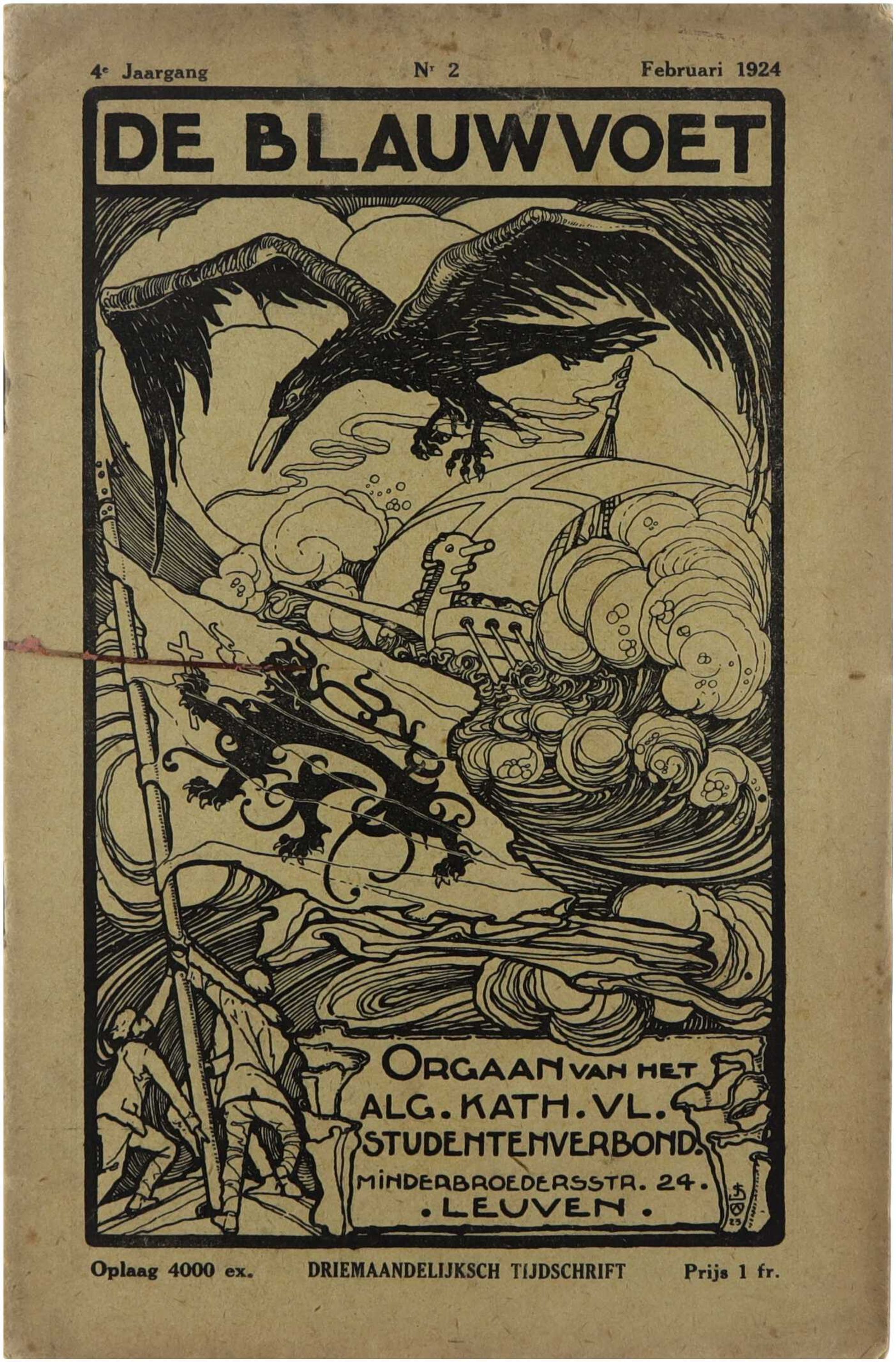 Driemaandelijks jeugdtijdschrift. Dit nummer van De Blauwvoet fungeert als officieel orgaan van het Algemeen Katholiek Vlaams Studentenverbond en weerspiegelt de ideologische, culturele en maatschappelijke standpunten van de katholiek-Vlaamse studentenbeweging in het interbellum. De bijdragen behandelen thema’s als Vlaamse bewustwording, studentenleven, religieuze overtuiging en maatschappelijke engagement.