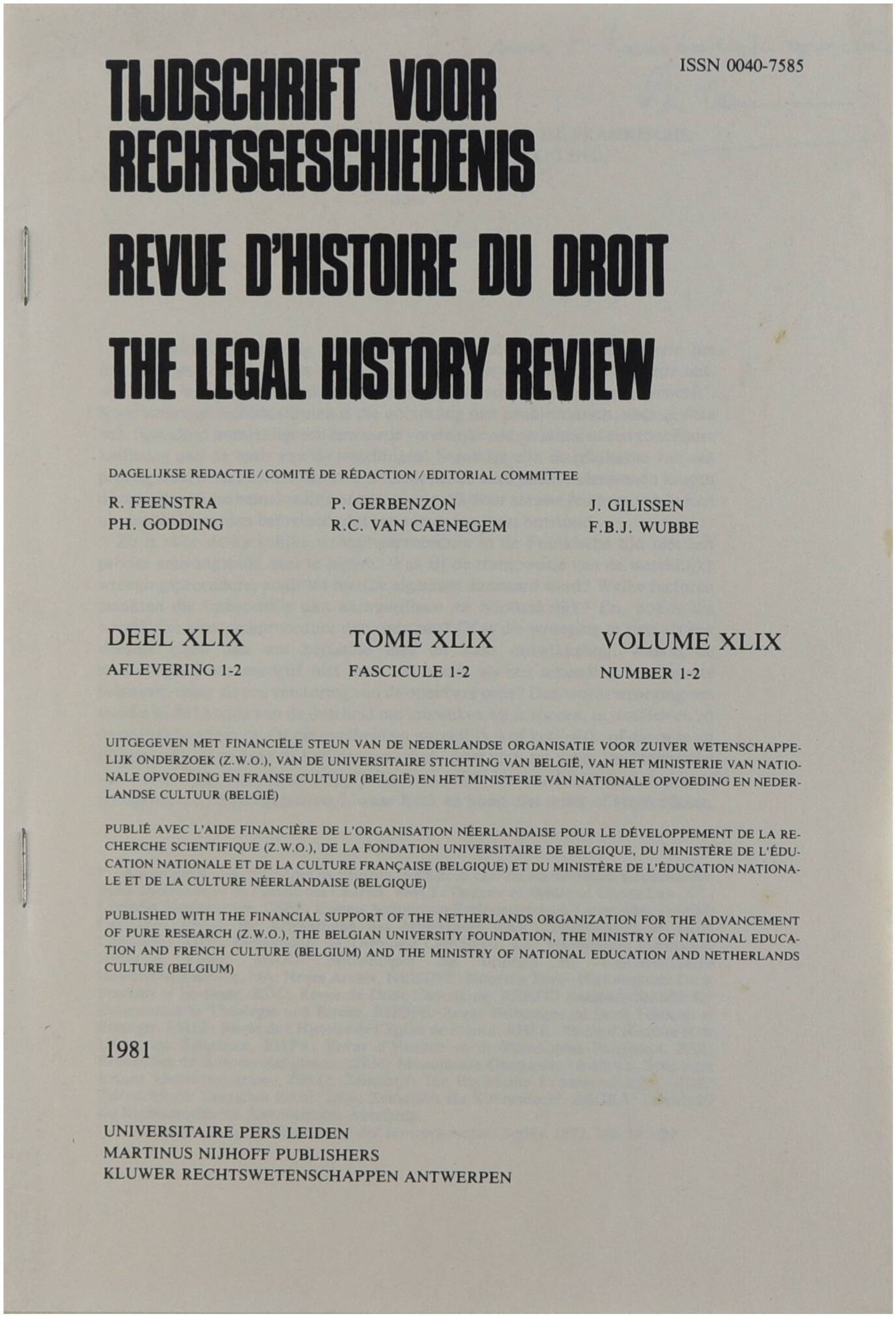 Overdruk uit 'Tijdschrift voor rechtsgeschiedenis (XLIX, aflevering 1-2)' (Leiden - Antwerpen)