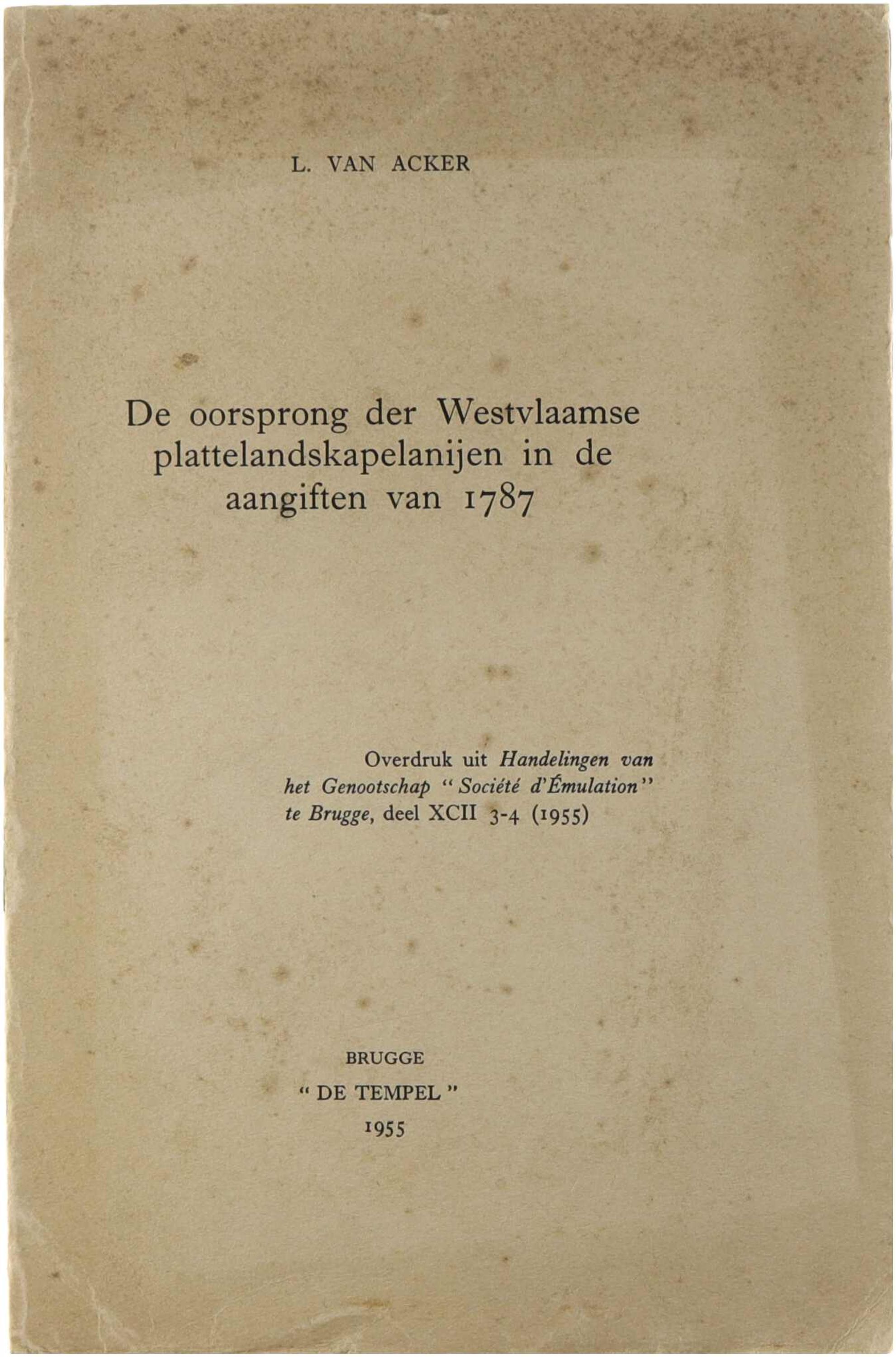 De oorsprong der Westvlaamse plattelandskapelanijen in de aangiften van 1787