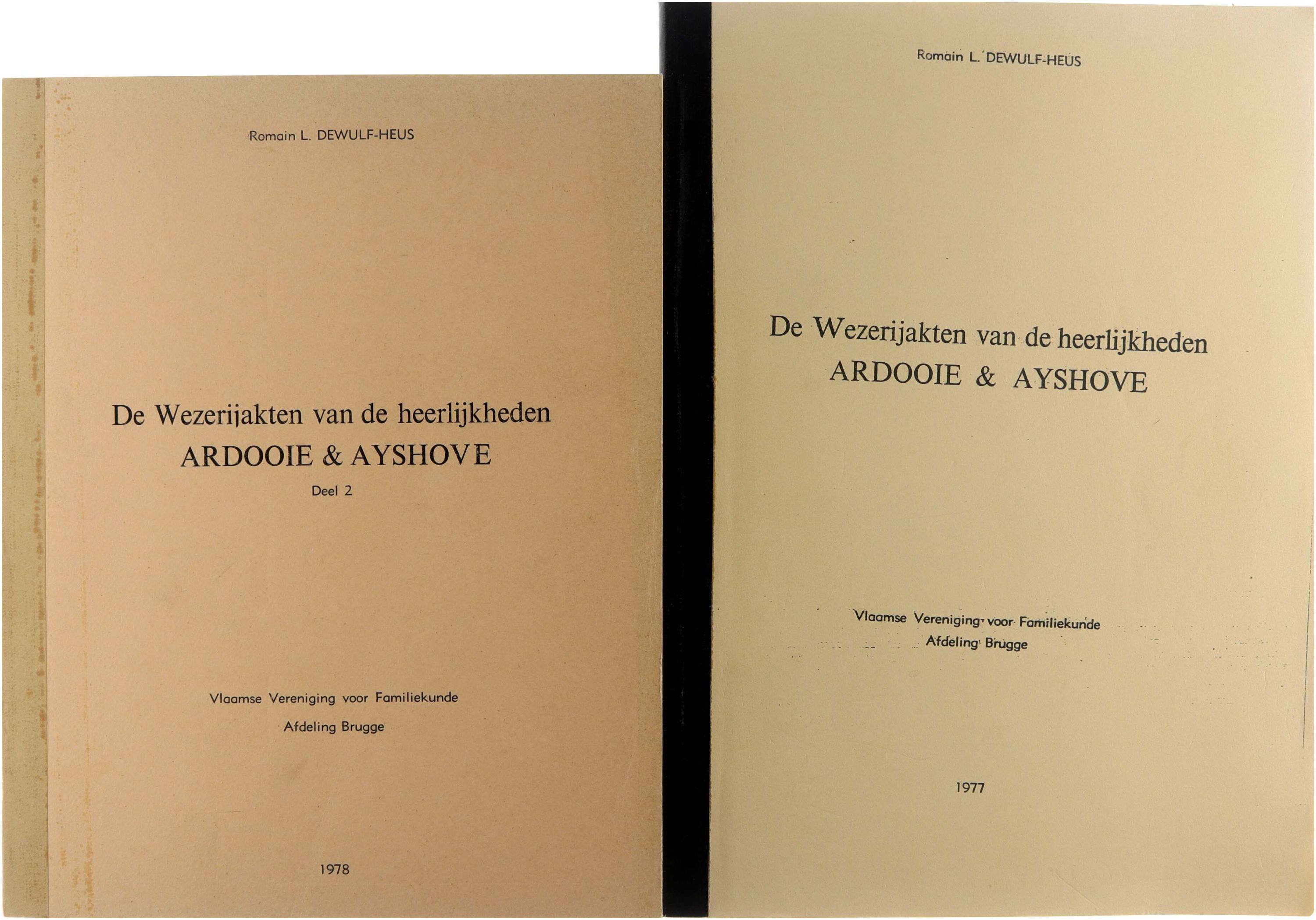Deze eerste twee delen bevatten de systematische transcriptie en ontsluiting van de wezerijakten van de heerlijkheden Ardooie en Ayshove. De publicatie biedt gedetailleerde informatie over voogdijregelingen, minderjarige erfgenamen, familiebanden en bezittingen, en vormt een rijke bron voor genealogisch en sociaal-historisch onderzoek naar het vroegmoderne plattelandsleven in West-Vlaanderen.