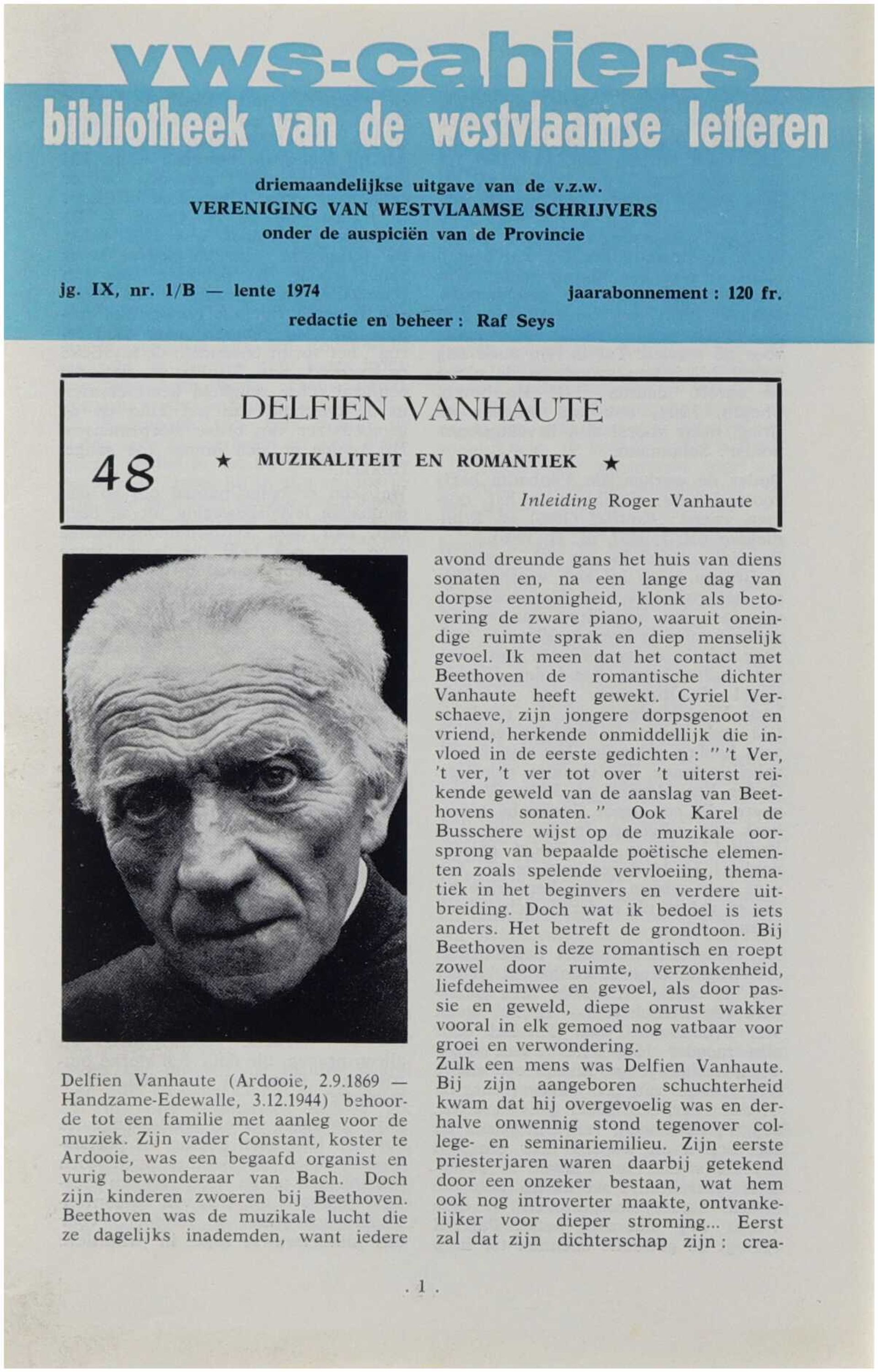 Dit cahier is gewijd aan het leven en het literaire oeuvre van een West-Vlaamse schrijver en biedt een biografisch en kritisch overzicht van diens betekenis binnen de regionale en Vlaamse literatuur. Aan de hand van levensgegevens, thematische bespreking en situering binnen de literaire context wordt het schrijverschap belicht, met aandacht voor stijl, thematiek en culturele achtergrond. De uitgave kadert binnen de doelstelling van de VWS-cahiers om het literaire erfgoed van West-Vlaanderen te documenteren en toegankelijk te maken.