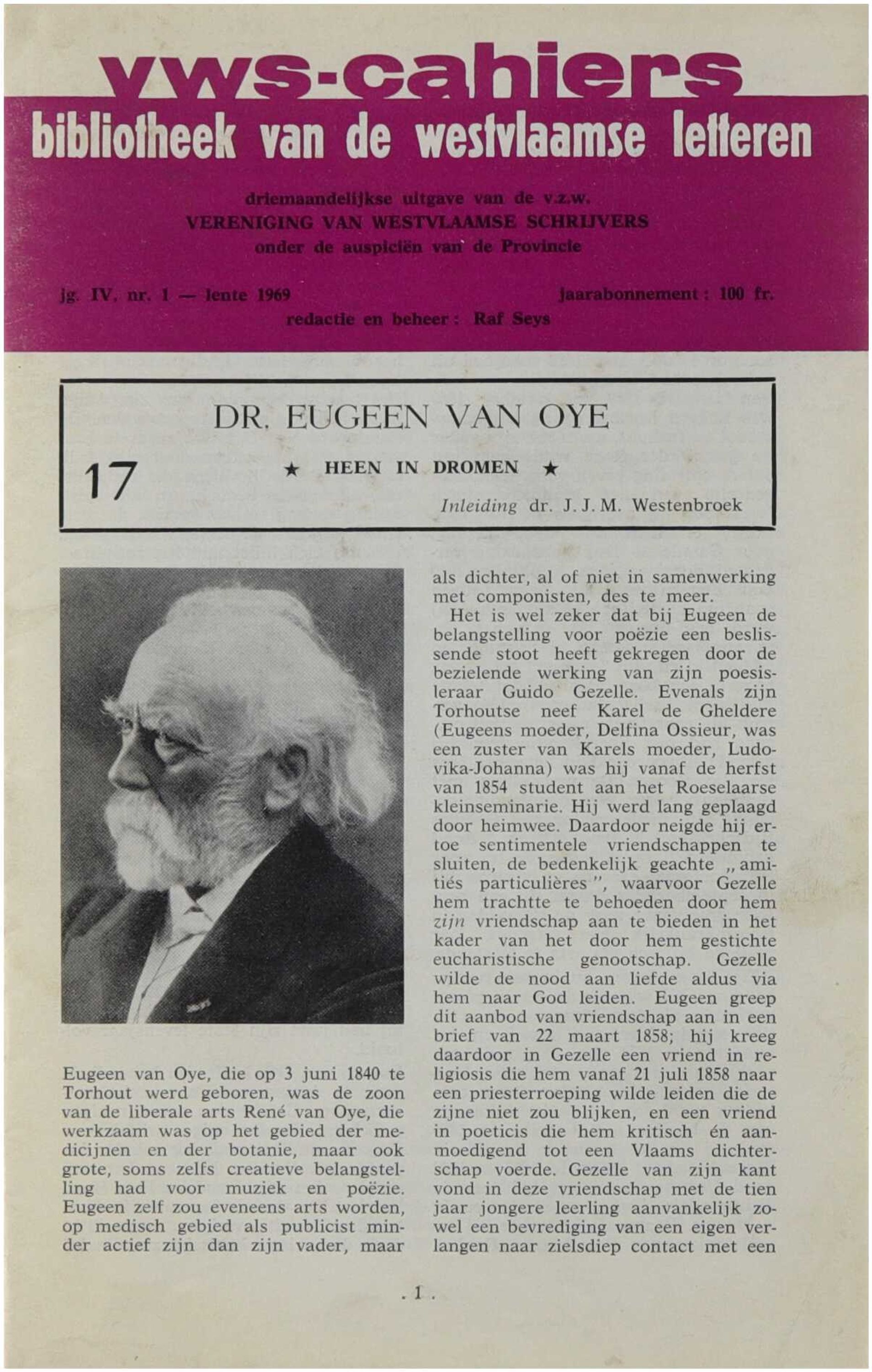 Dit cahier is gewijd aan het leven en het literaire oeuvre van een West-Vlaamse schrijver en biedt een biografisch en kritisch overzicht van diens betekenis binnen de regionale en Vlaamse literatuur. Aan de hand van levensgegevens, thematische bespreking en situering binnen de literaire context wordt het schrijverschap belicht, met aandacht voor stijl, thematiek en culturele achtergrond. De uitgave kadert binnen de doelstelling van de VWS-cahiers om het literaire erfgoed van West-Vlaanderen te documenteren en toegankelijk te maken.