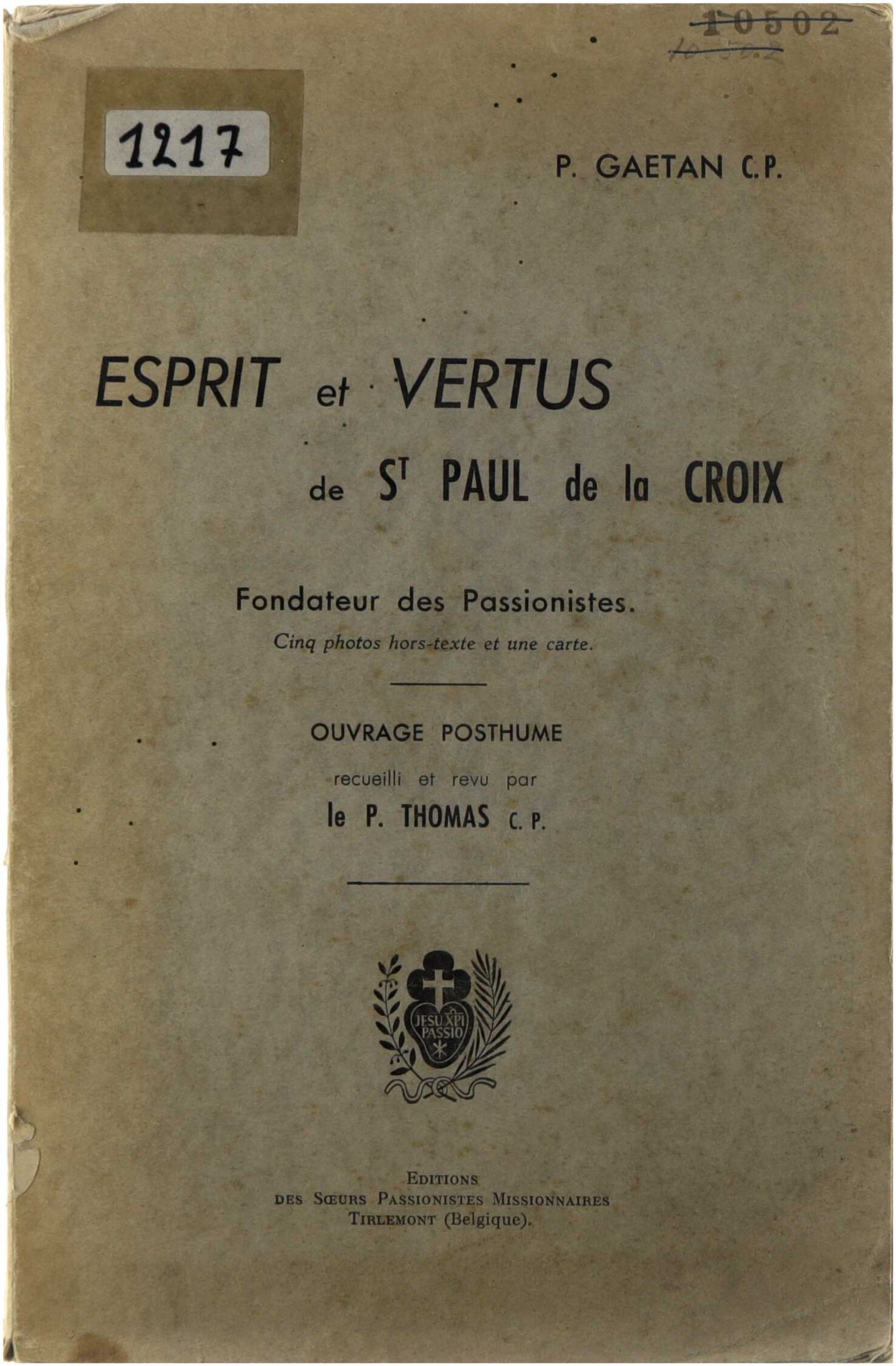 Ce livre intitulé « Esprit et Vertus de St Paul de la Croix » est un ouvrage posthume écrit par le Père Gaétan C.P. et révisé par le Père Thomas C.P., tous deux membres de la Congrégation de la Passion. Publié par les Éditions des Sœurs Passionistes Missionnaires à Tirlemont, en Belgique, ce texte se consacre à l'étude hagiographique et spirituelle du fondateur des Passionistes, Saint Paul de la Croix, en mettant l'accent sur son charisme, ses qualités morales et la doctrine mystique centrée sur la Passion du Christ. L'ouvrage s'inscrit dans une tradition de littérature de formation religieuse, visant à transmettre l'héritage spirituel du saint aux membres de l'ordre et aux fidèles, tout en étant enrichi de documents visuels tels que des photographies hors-texte et une carte pour illustrer son parcours historique.