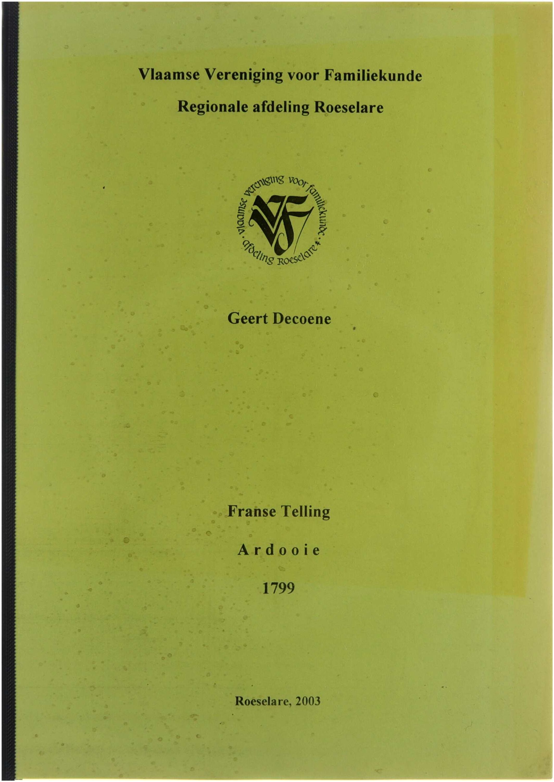 Deze publicatie bevat de bewerkte en toegankelijke weergave van de Franse telling van 1799 voor de gemeente Ardooie. De uitgave geeft een overzicht van de inwoners, gezinssamenstellingen, leeftijden, beroepen en woonplaatsen tijdens de Franse periode, en vormt een belangrijke bron voor genealogisch en demografisch onderzoek naar de lokale geschiedenis van Ardooie op het einde van de achttiende eeuw.
