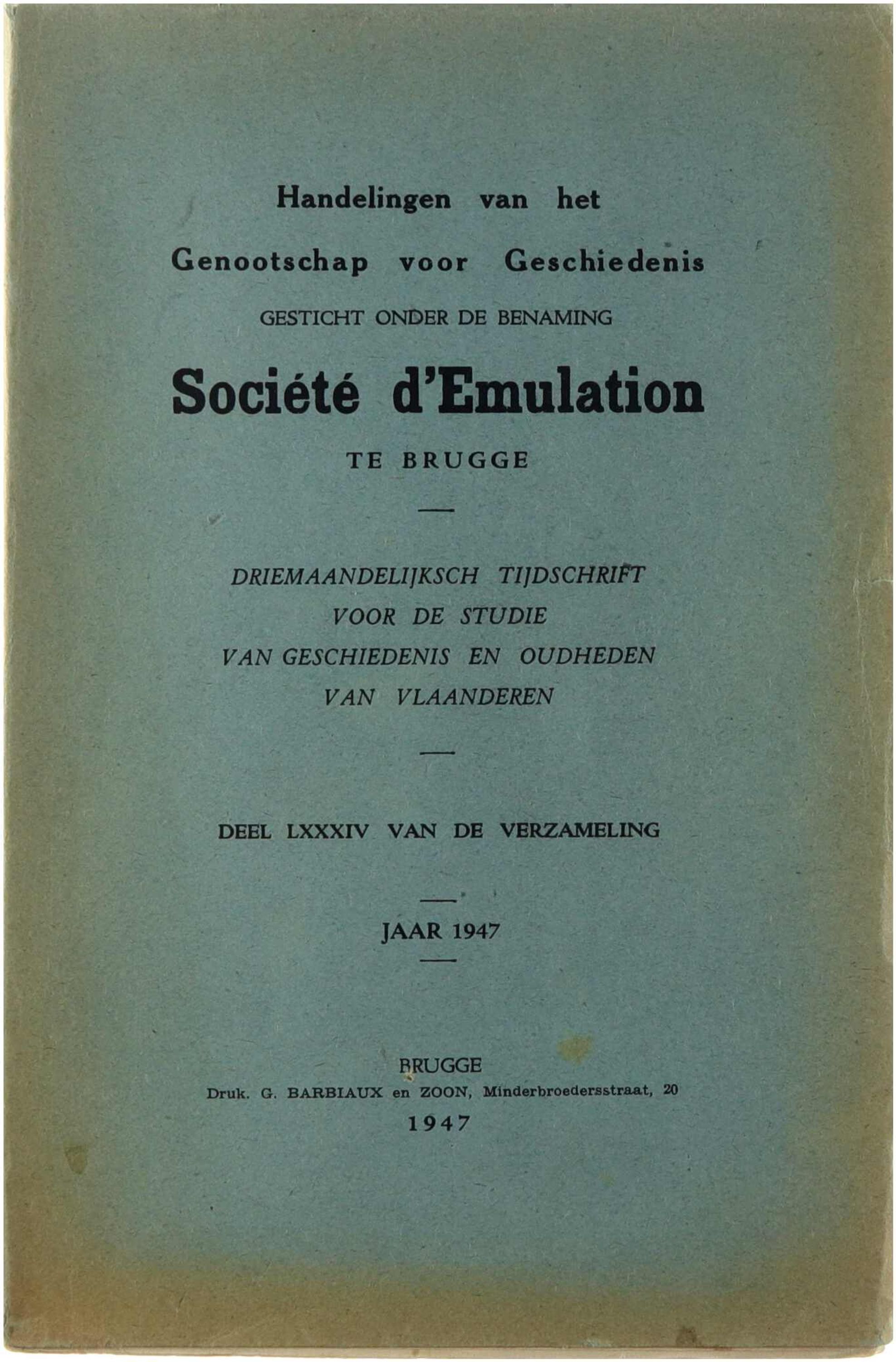 Handelingen van het genootschap voor geschiedenis gesticht onder de benaming Société d'émulation te Brugge (84)