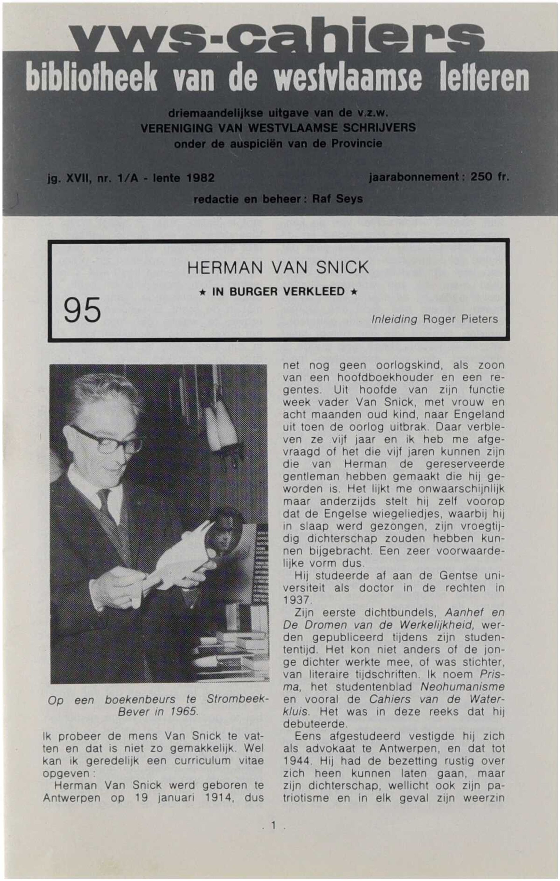VWS-cahiers. Bibliotheek van de Westvlaamse letteren (95)