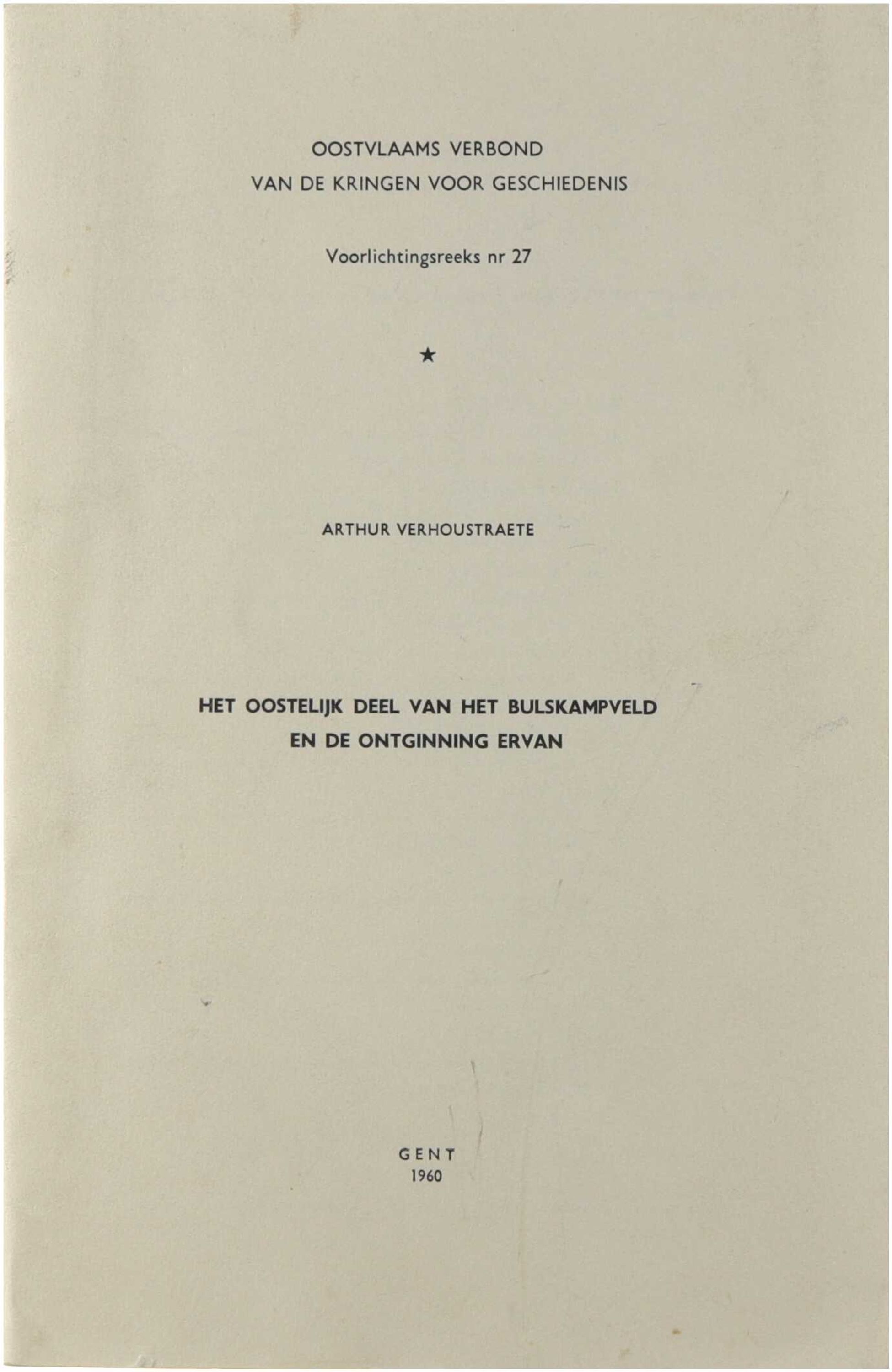 Deze historische en landschappelijke studie onderzoekt de ontginning van het oostelijk deel van het Bulskampveld, met aandacht voor bodemgesteldheid, eigendomsstructuren en menselijke ingrepen doorheen de tijd. De auteur plaatst de ontginningsgeschiedenis binnen een breder kader van rurale ontwikkeling en landschapstransformatie in Vlaanderen, en maakt daarbij gebruik van historisch-geografische en archivalische bronnen.
