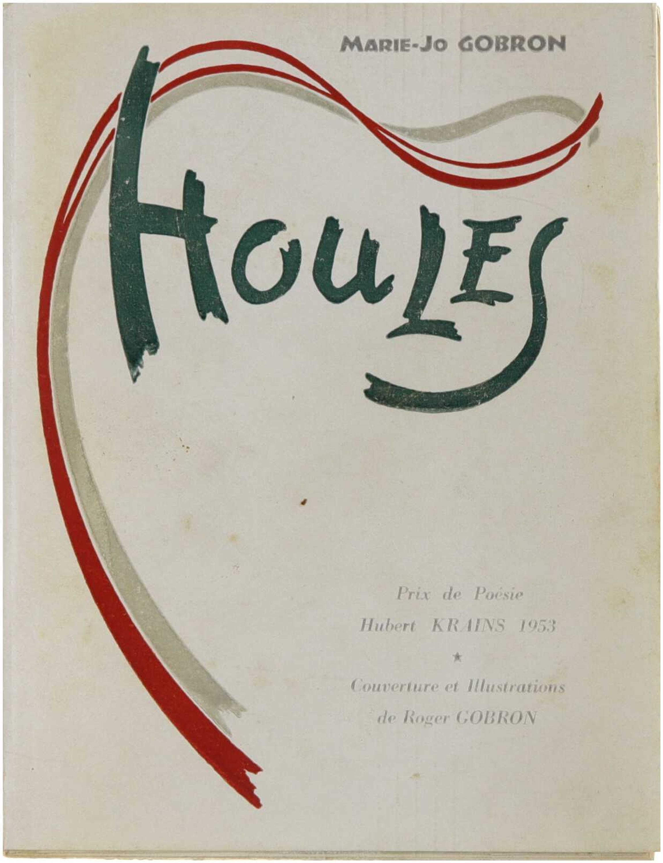 Prix de Poésie Hubert Krains 1953. Houles est un recueil poétique dans lequel Marie-Jo Gobron explore des thèmes liés au mouvement intérieur, aux émotions et aux paysages marins suggérés par le titre. Les textes privilégient une écriture sensible et évocatrice, jouant sur les rythmes, les images et les résonances affectives. Les illustrations de Roger Gobron accompagnent et prolongent l’univers poétique du recueil, renforçant l’atmosphère méditative et expressive de l’ensemble.