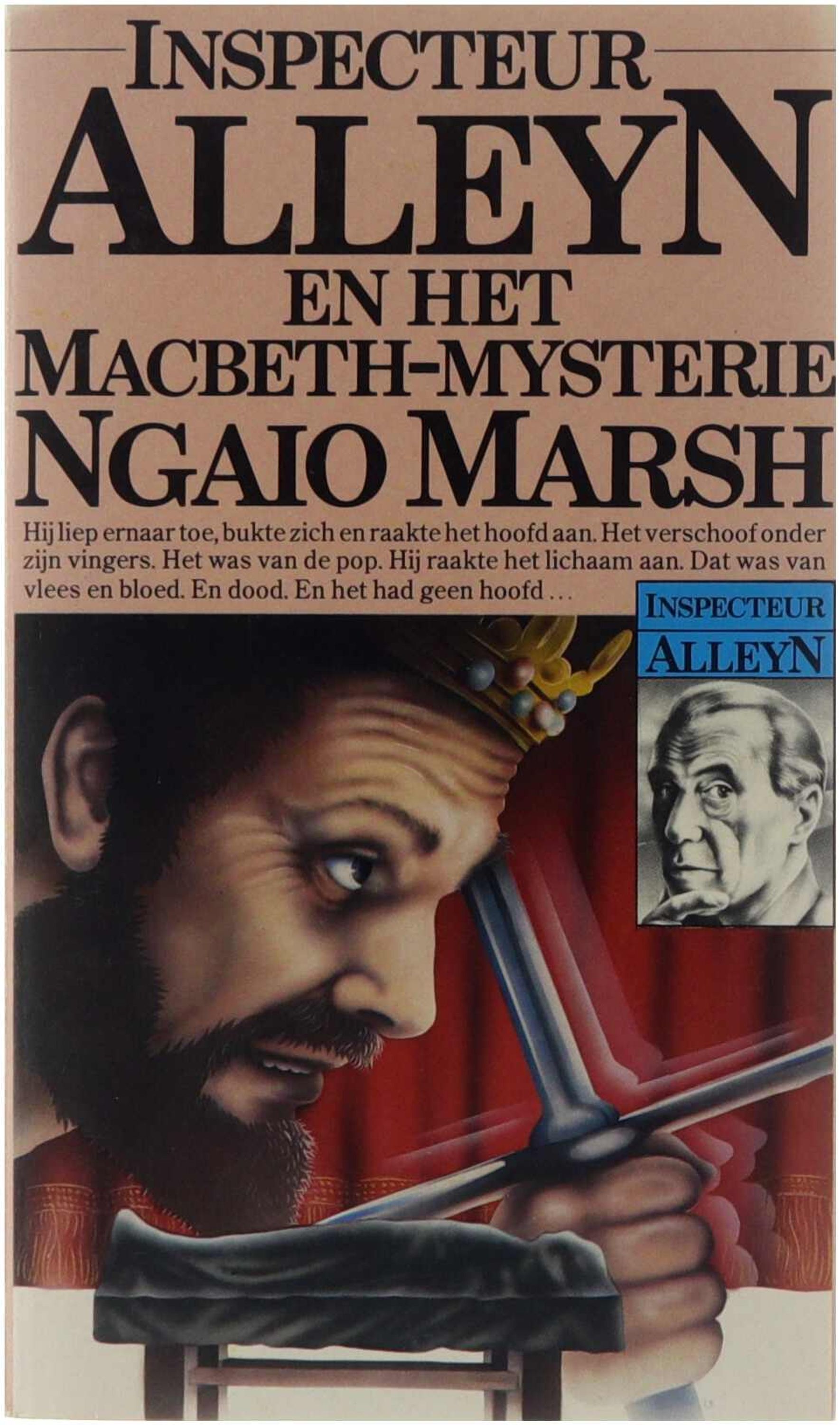 Dit is het laatste boek van Ngaio Marsh, voltooid vlak voor haar dood op 82-jarige leeftijd. Peregrine Jay, eigenaar van het Dolphin-theater, voert met zijn gezelschap MACBETH op. Er gaan geruchten dat het toneelstuk ongeluk zou brengen, maar iedereen tracht zich daar niets van aan te trekken. Totdat er enkele ongelukken gebeuren en totdat, in de belangrijkste scène, niet een pop maar het hoofd wordt afgeslagen, maar de hoofdrolspeler zelf... Inspecteur Alleyn zit in het publiek. Hij moet een bijna onmogelijke misdaad oplossen. NGAIO MARSH – groeide op in Nieuw-Zeeland. Na een korte carrière als actrice en regisseuse ontdekte zij haar ware roeping: het schrijven van detectiveromans. Haar tientallen boeken werden wereldsuccessen en haar speurder, inspecteur Alleyn, is uit de misdaadliteratuur niet meer weg te denken.