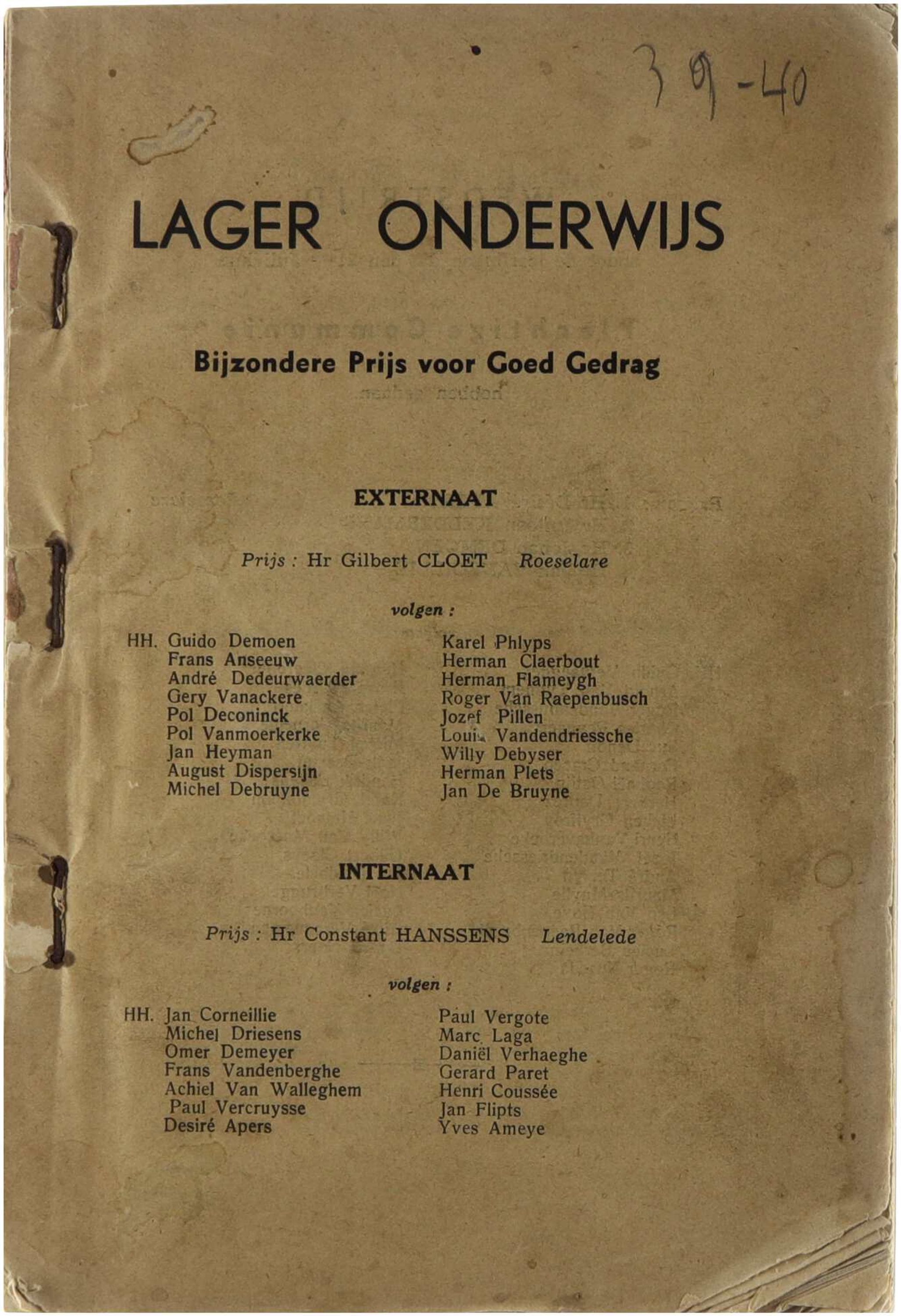 Klein seminarie Roeselare. Prijsuitdeeling 1940