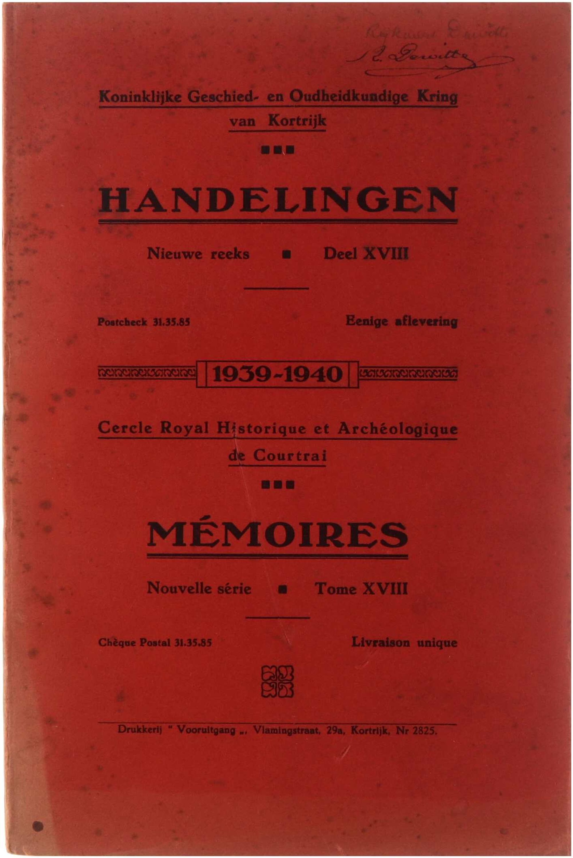 Koninklijke geschied- en oudheidkundige kring van Kortrijk. Handelingen (XVIII)