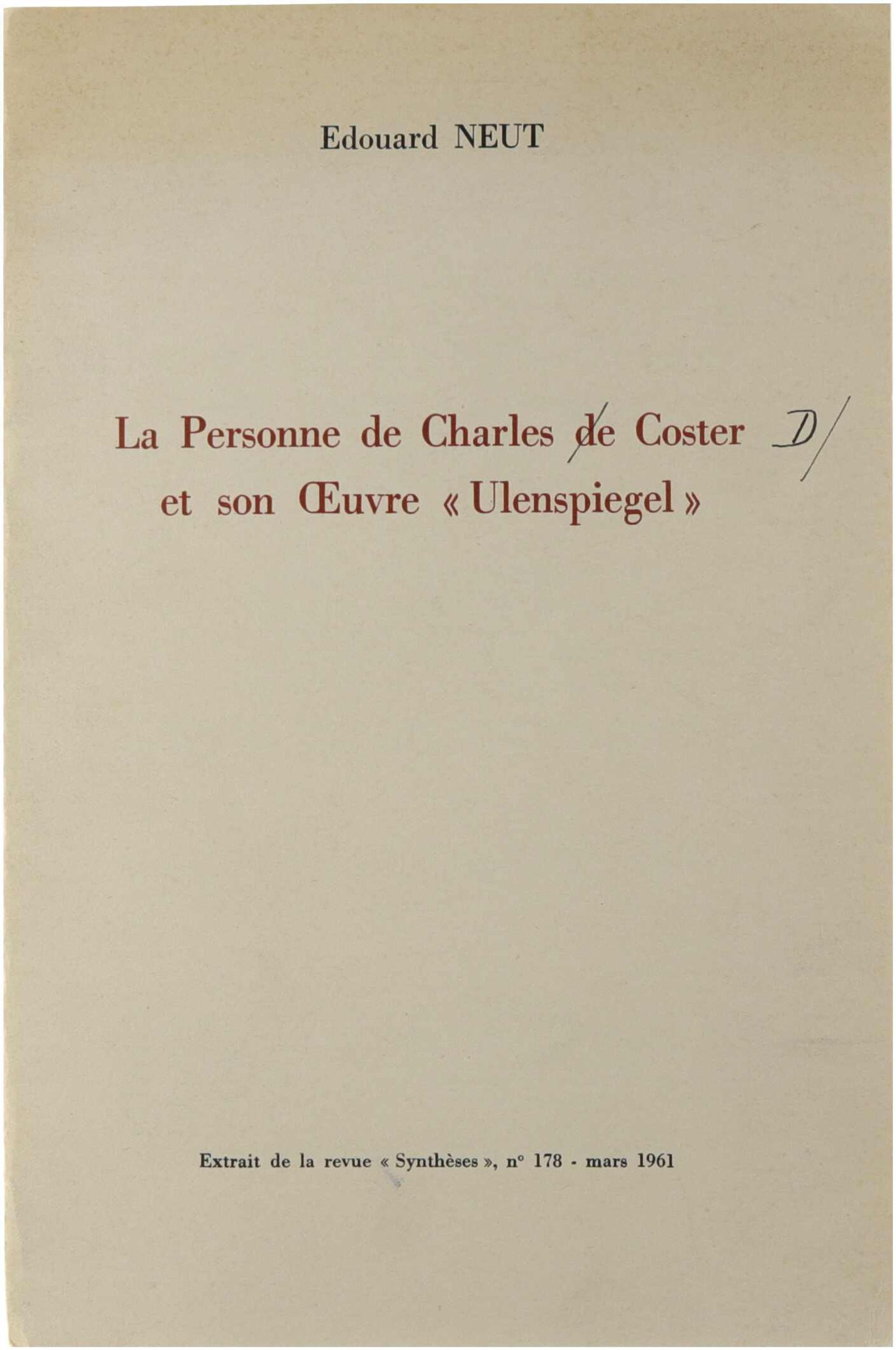 La personne de Charles De Coster et son oeuvre "Ulenspiegel"