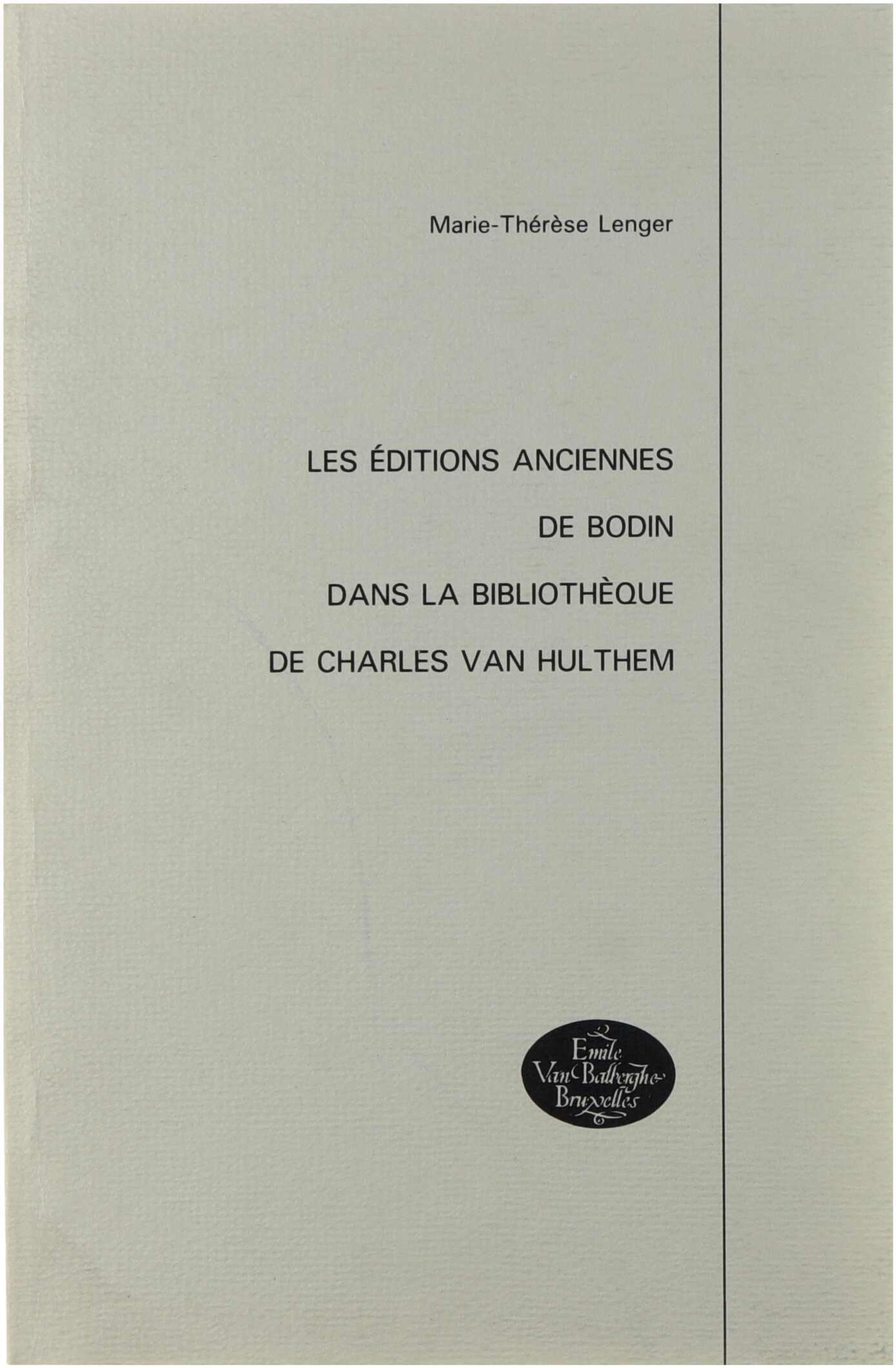 Cette étude examine les éditions de Jean Bodin conservées dans la bibliothèque de Charles Van Hulthem, l’un des plus importants bibliophiles belges de la fin du XVIIIe et du début du XIXe siècle. L’ouvrage analyse la nature, la provenance et les particularités bibliographiques de ces éditions, en les replaçant dans le contexte de la politique d’acquisition de Van Hulthem et de la réception intellectuelle de la pensée politique et juridique de Bodin. Il constitue ainsi une contribution à l’histoire du livre, à l’histoire des bibliothèques et à l’étude de la littérature humaniste et politique de l’époque moderne.