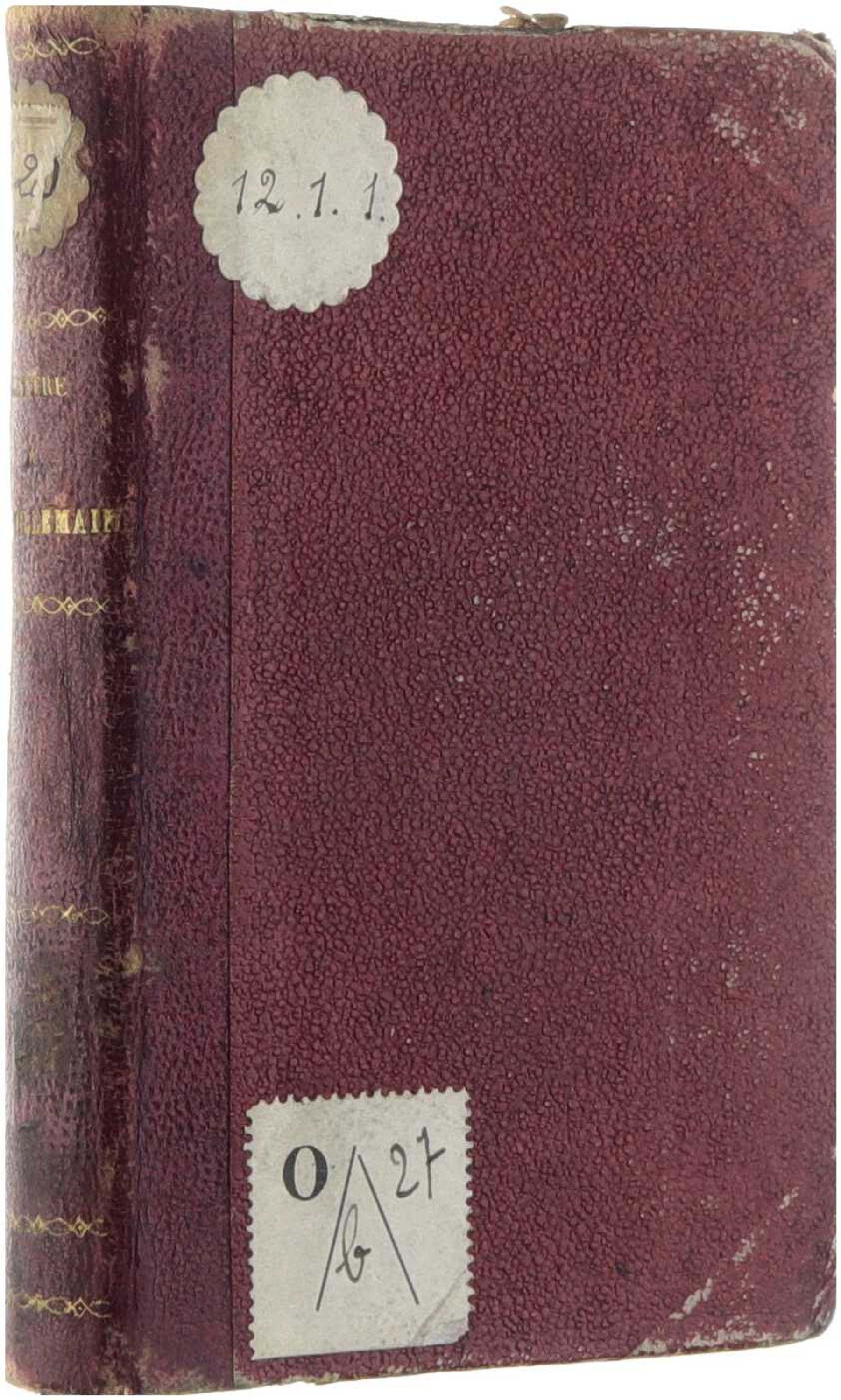 Ex-bib. Frottements, bords et coins émoussés, rousseurs sur les pages de garde, mais pas dans le texte.