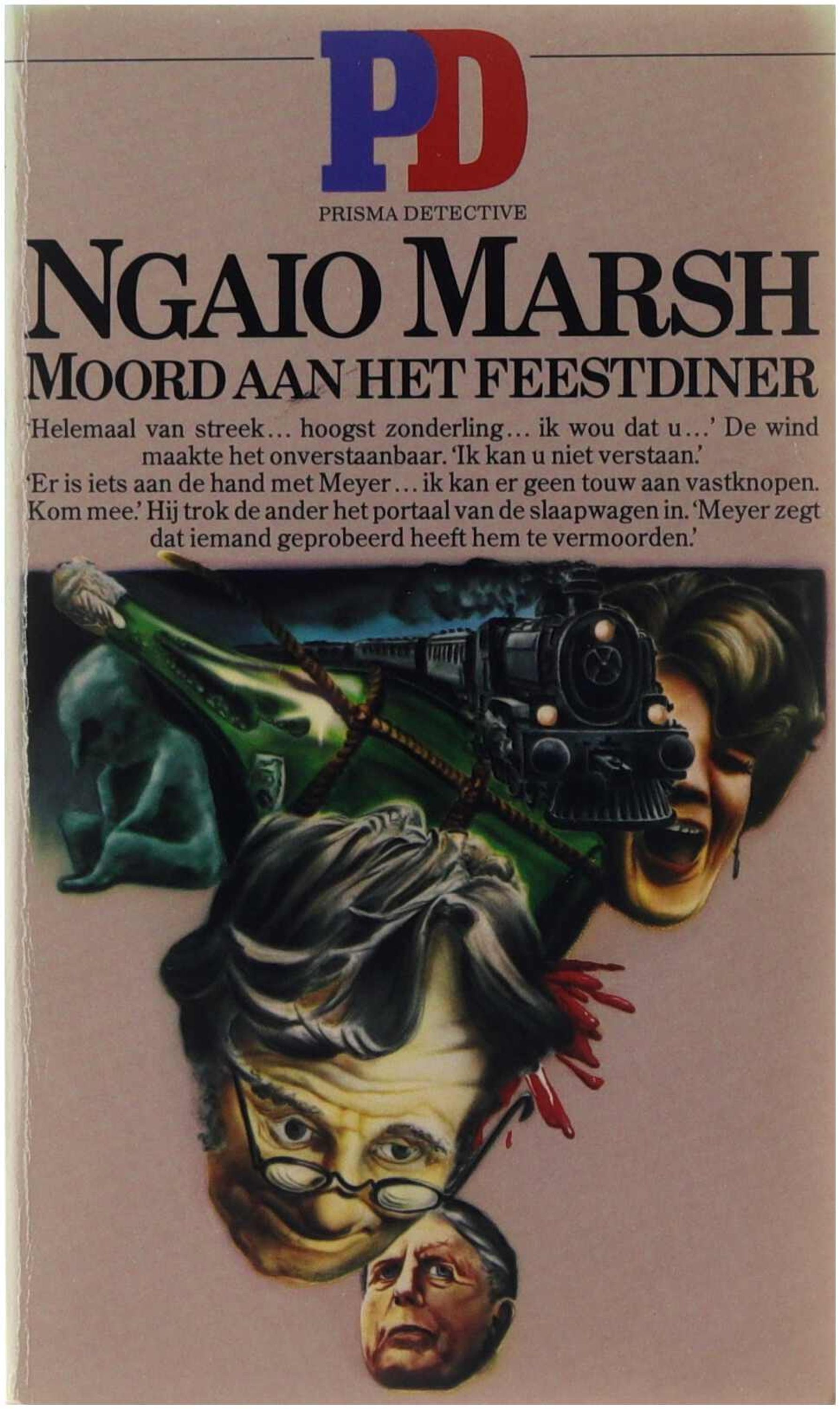 Inspecteur Alleyn raakt in Nieuw-Zeeland verzeild in een reizend toneelgezelschap. Al snel zit hij tot over zijn oren in de criminele zorgen. Na de moord op de manager, ontdekt Alleyn een serie mysterieuze voorvallen, die een nerveuze sfeer in het gezelschap hebben gebracht. De problemen stapelen zich op, het aantal verdachten wordt steeds groter en steeds meer vreemde feiten komen aan het licht. NGAIO MARSH — groeide op in Nieuw-Zeeland. Als actrice en regisseuse verwierf zij in haar geboorteland en in Australië en Engeland grote bekendheid. Haar eerste detective schreef zij uit liefhebberij. Sindsdien werd zij met haar tientallen boeken wereldberoemd en is haar Inspecteur Alleyn niet meer uit de misdaadliteratuur weg te denken.