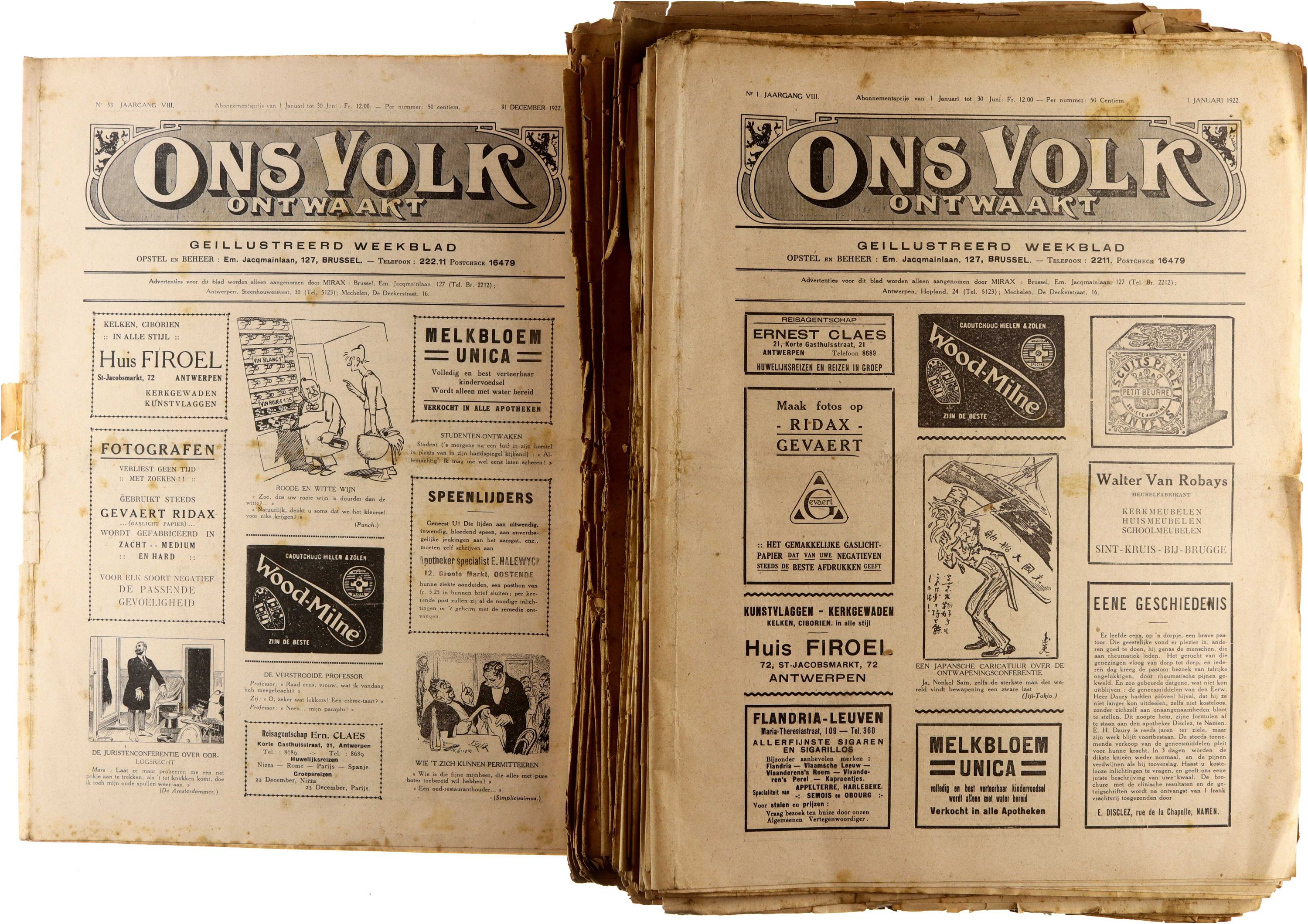53 nummers. Ons Volk ontwaakt is een Vlaamsgezind cultureel en maatschappelijk tijdschrift dat in de periode vóór, tijdens en na de Eerste Wereldoorlog aandacht besteedt aan Vlaamse bewustwording, taalstrijd, volksopvoeding en sociale en politieke ontwikkelingen. De jaargangen weerspiegelen de ideologische, culturele en nationale debatten van hun tijd en combineren beschouwende artikels met actualiteitsgerichte bijdragen.