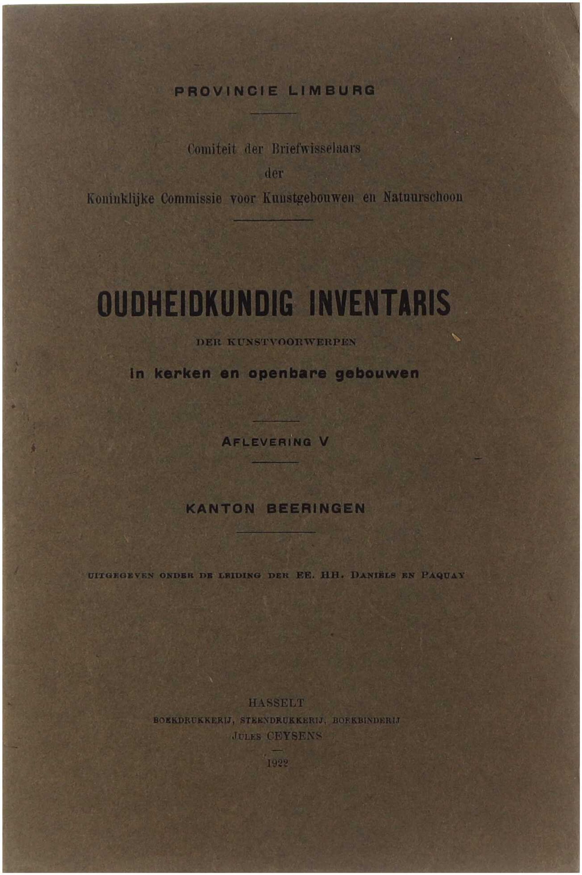 Oudheidkundige Inventaris der Kunstvoorwerpen in kerken en openbare gebouwen. Aflevering V. Kanton Beeringen