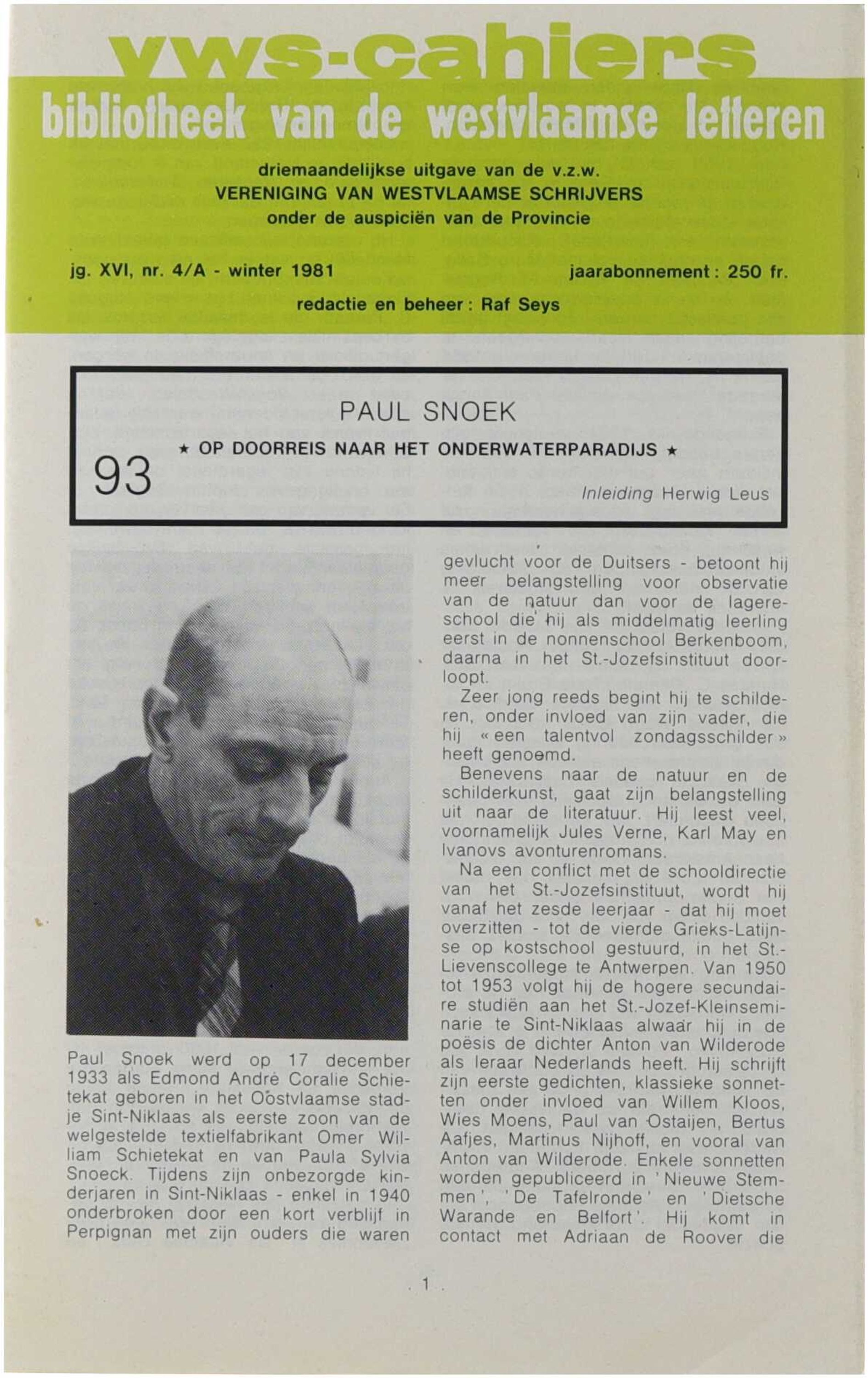 VWS-cahiers. Bibliotheek van de Westvlaamse letteren (93)
