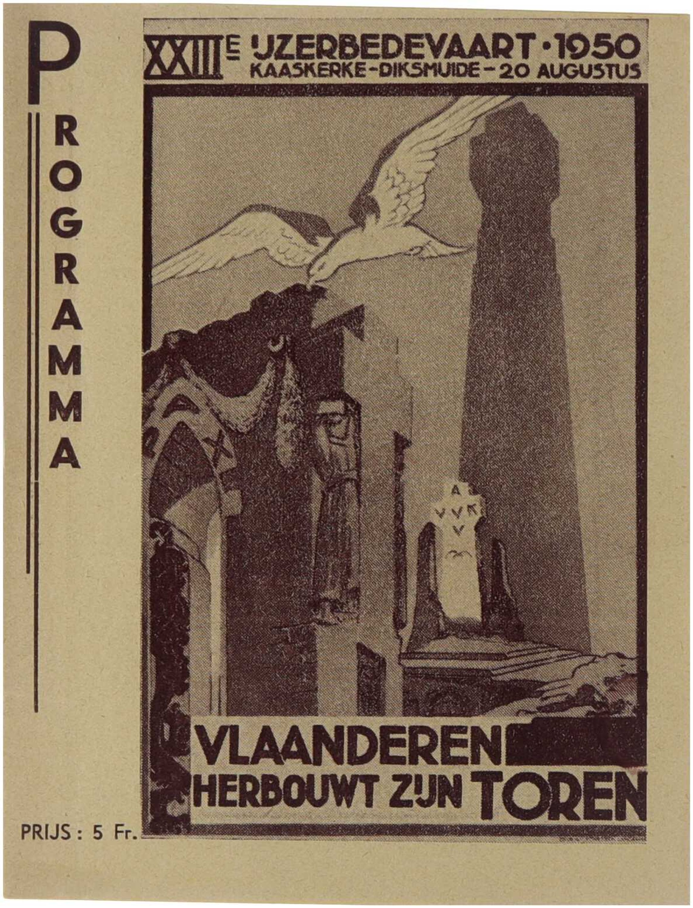 Programma XXIII-IJzerbedevaart Kaaskerke-Diksmuide 20 Augustus 1950. Vlaanderen herbouwt zijn toren