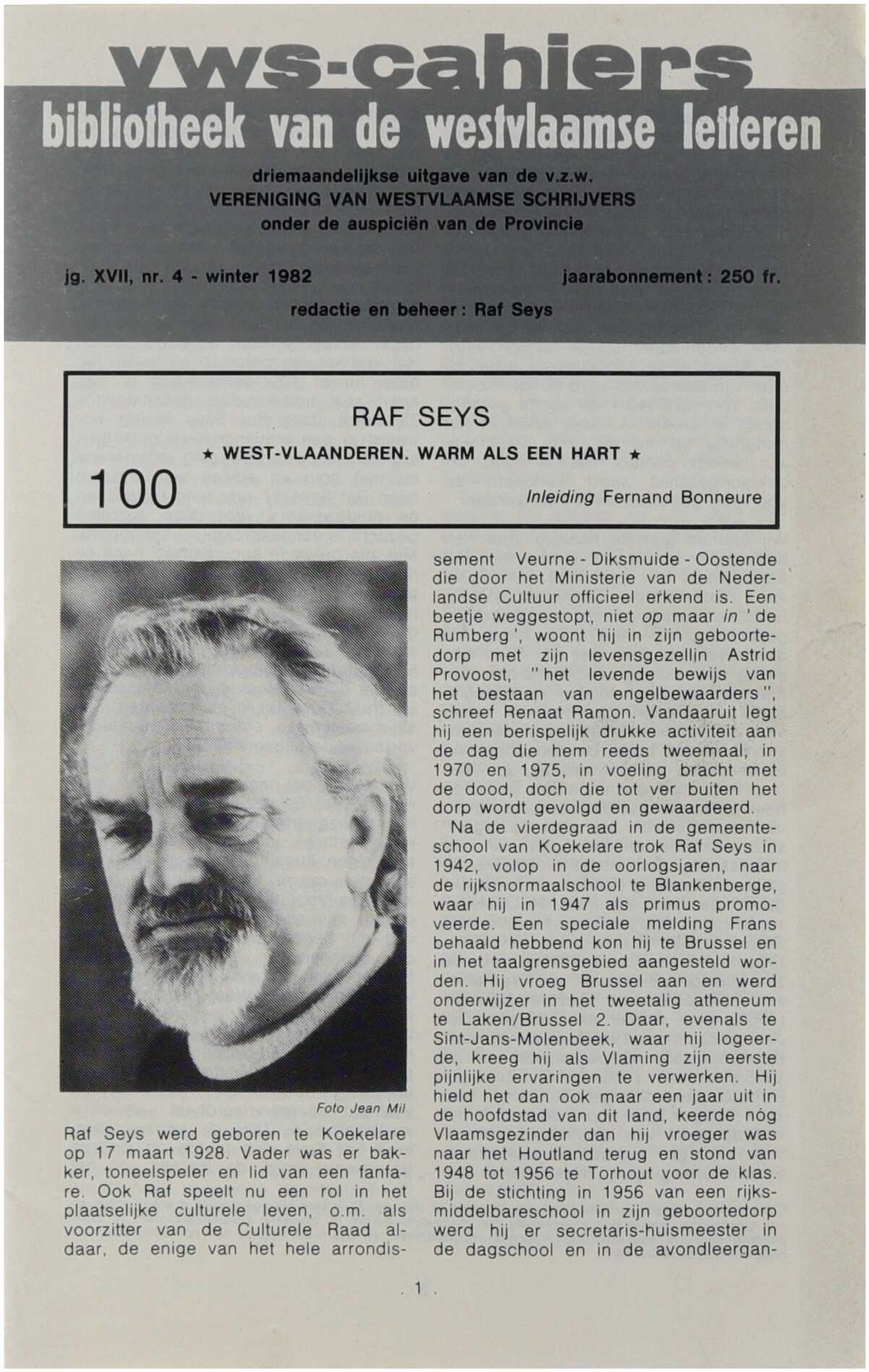 VWS-cahiers. Bibliotheek van de Westvlaamse letteren (100)