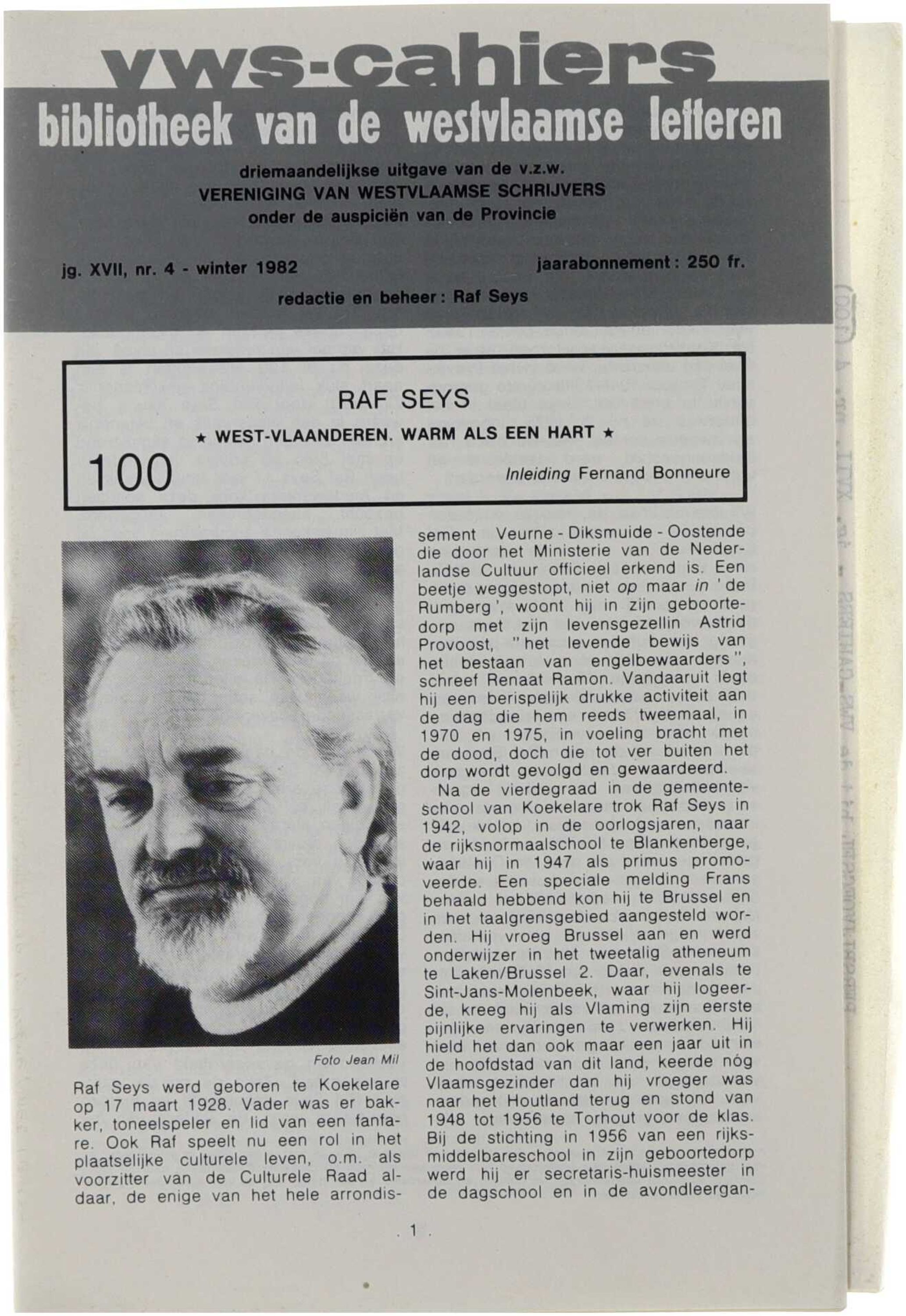 VWS-cahiers. Bibliotheek van de Westvlaamse letteren (100)