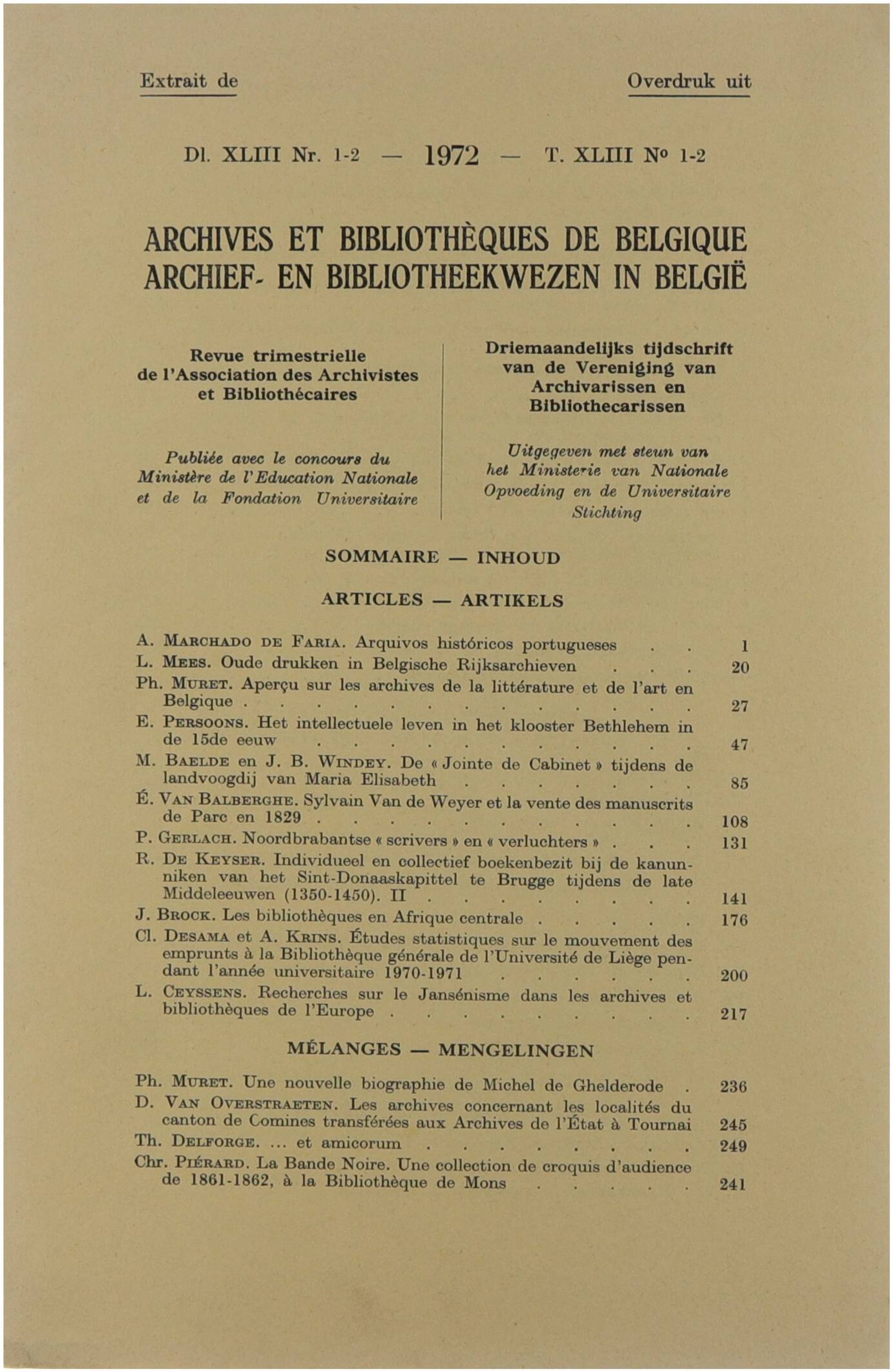 Overdruk uit 'Archives et bibliothèques de Belgique, XLIII nr. 1-2' (Brussel)