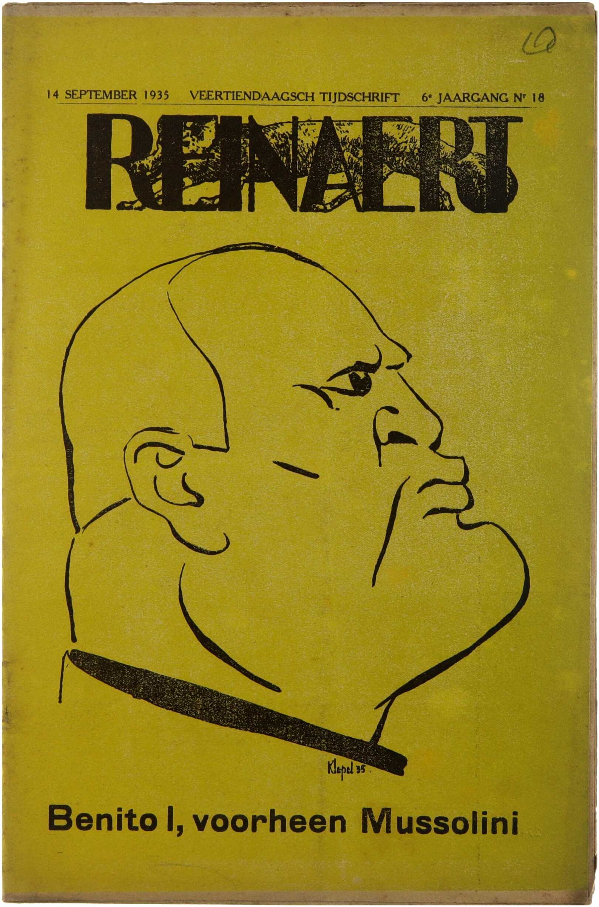 Reinaert. Satiriek tijdschrift. 1935 nummer 18. Benito I, voorheen Mussolini