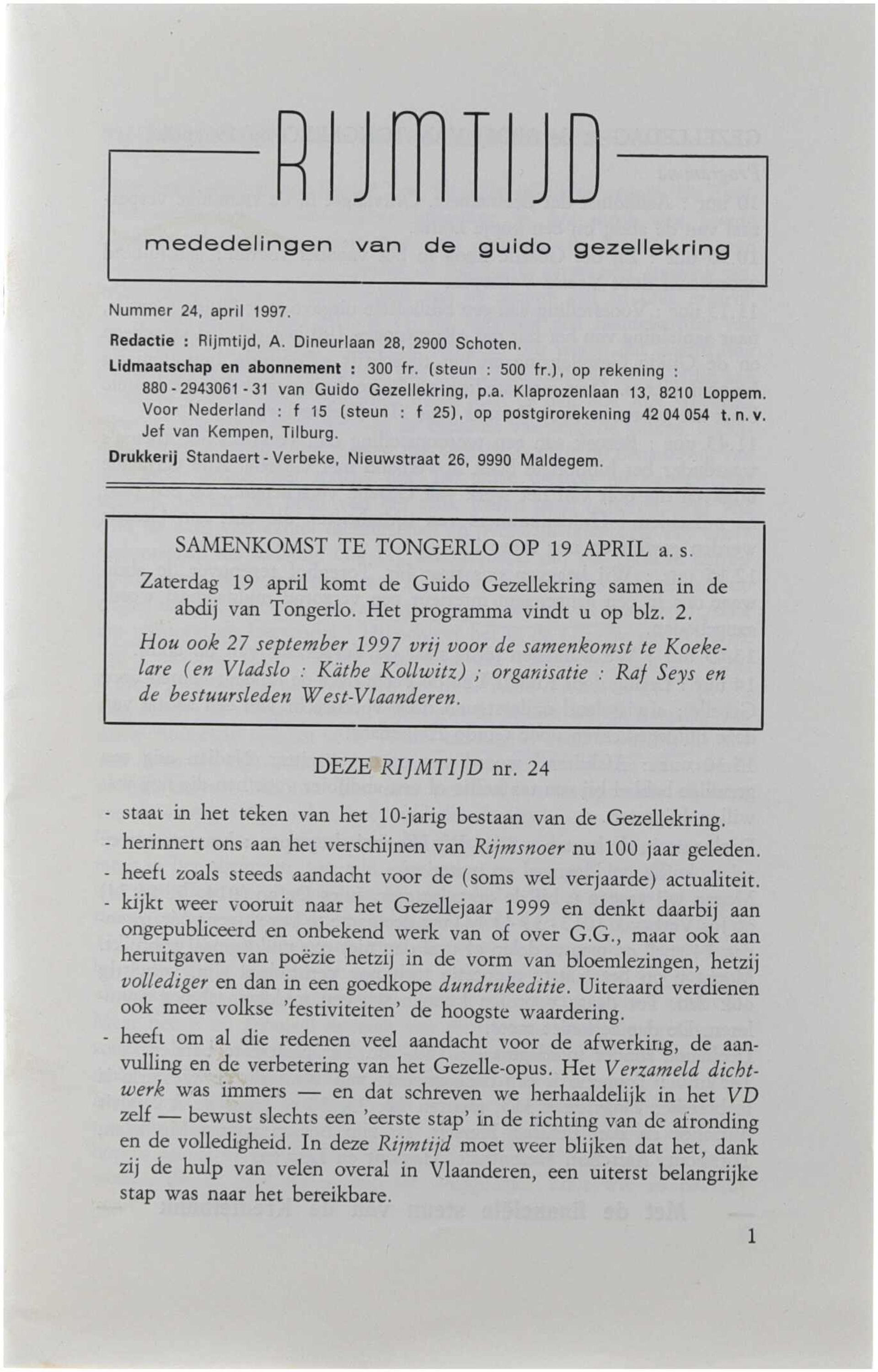 Rijmtijd. Mededelingen van de Guido Gezellekring april 1997