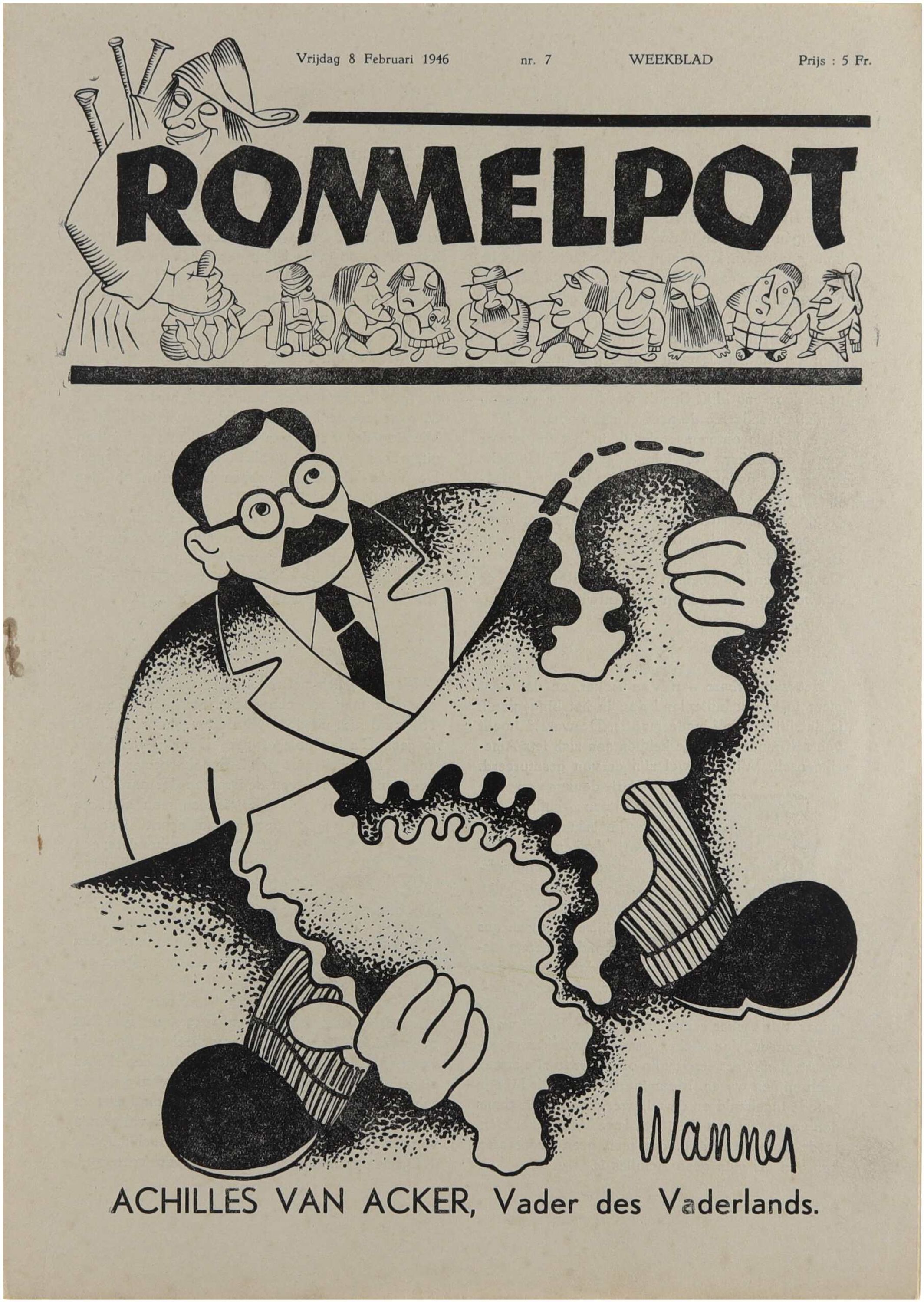 Dit losse nummer van de eerste jaargang van Rommelpot illustreert het karakter van het blad als Nederlandstalig satirisch en polemisch weekblad in het naoorlogse België. Het combineert humoristische stukken, cartoons, korte verhalen en opiniërende bijdragen met scherpe kritiek op het repressiebeleid na de Tweede Wereldoorlog. Het tijdschrift nam een uitgesproken Vlaams-nationalistische en anti-repressiepositie in en werd omwille van zijn confronterende toon als controversieel beschouwd. Elk afzonderlijk nummer weerspiegelt de politieke en ideologische spanningen die het publieke debat in het naoorlogse Vlaanderen kenmerkten.