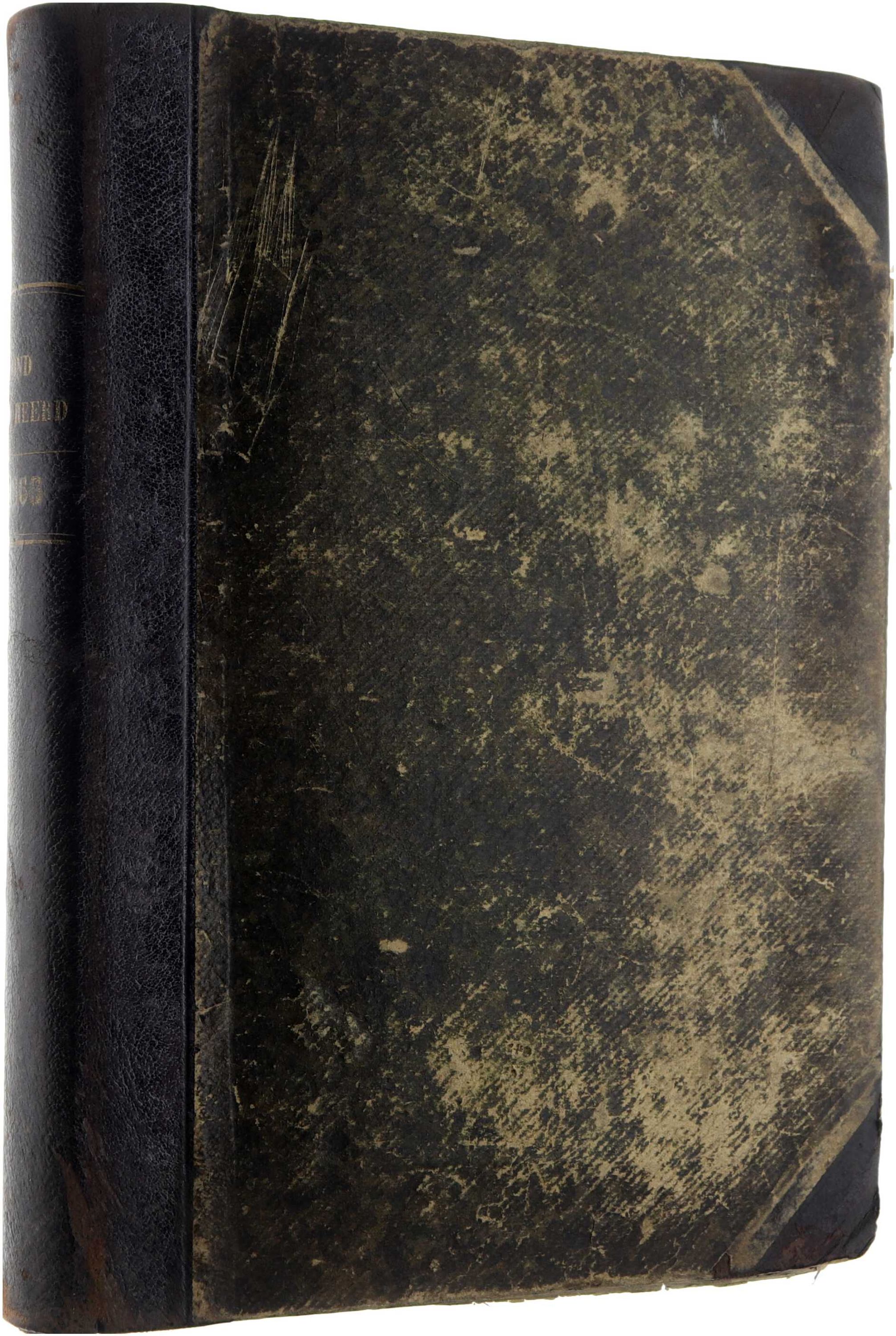 Verkleuring. Eigendomsmerk. Foxing op de snede; eigenaarsstempel; gescheurde bladen,, geplakt, kleine stukken tekstverlies op hoeken; mooie lederen rug; 6 laatste bladzijden ontbreken
