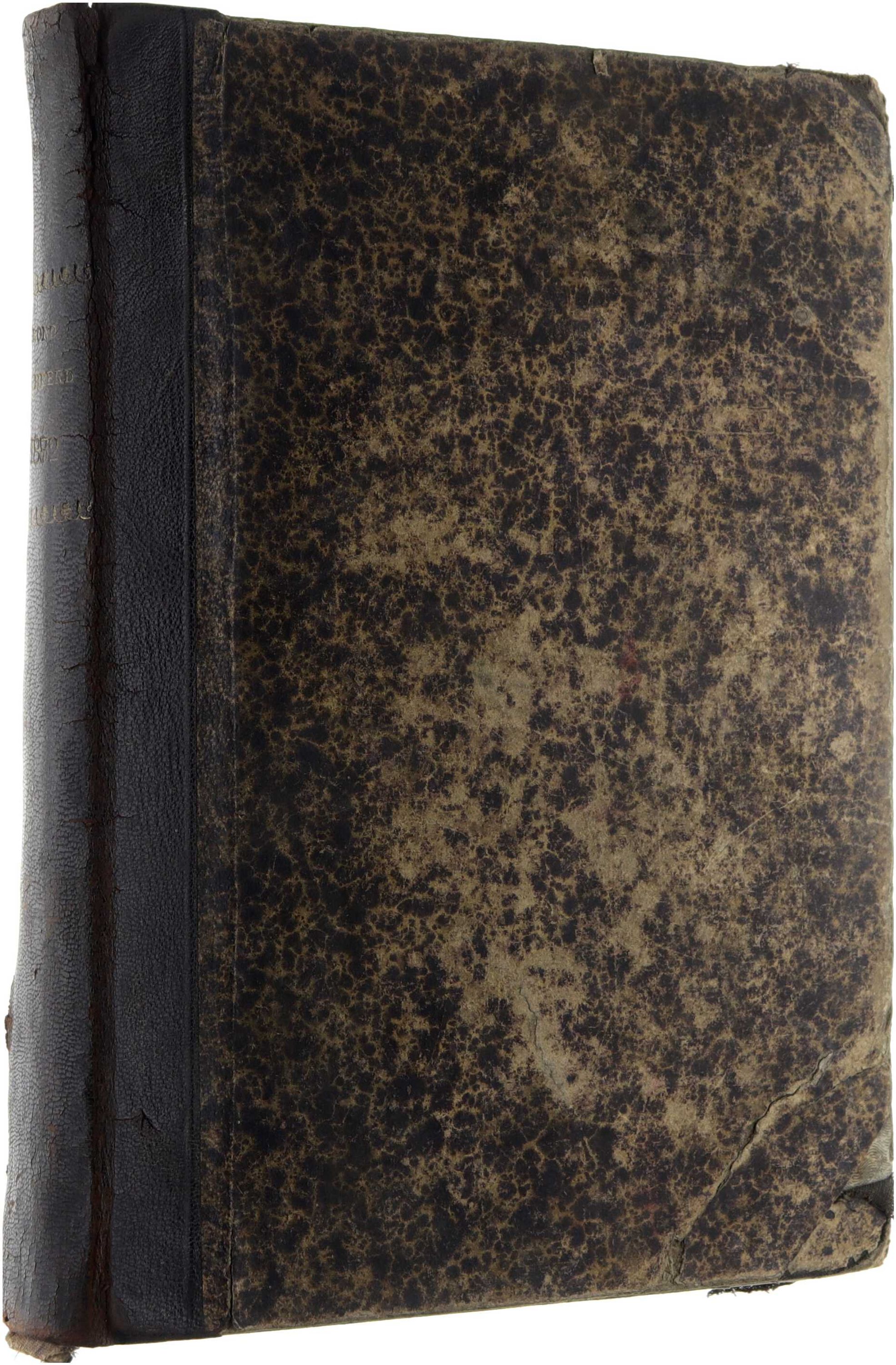 Verkleuring. Eigendomsmerk. Eigenaarsstempel; buitenste bladen gekreukt, gedeeltelijk los en kleine scheurtje; geplakt; tekstverlies hier en daar op de hoeken; laatste bladzijden ontbreken (aanwezig tot 448); lederen rug