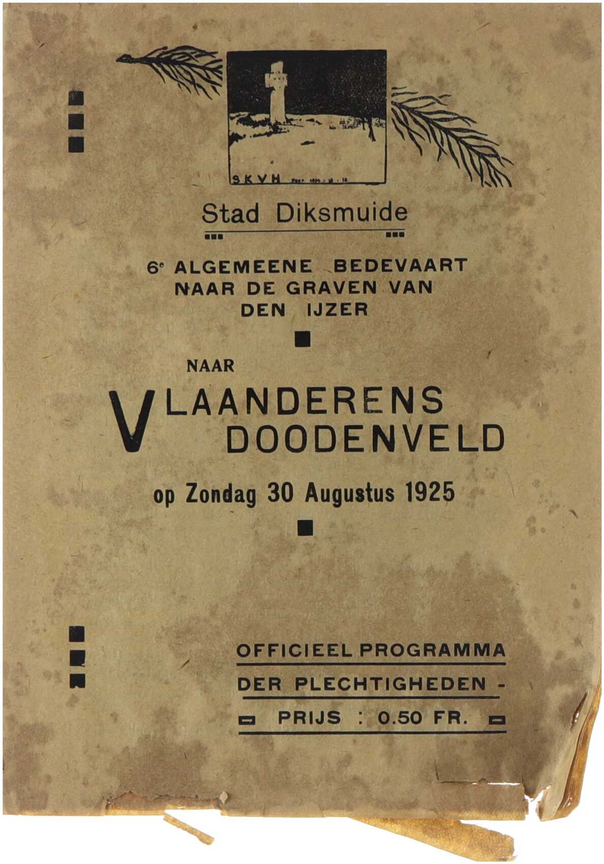 Stad Diksmuide, 6e algemeene bedevaart naar de graven van den IJzer. Naar Vlaanderens doodenveld op zondag 30 augustus 1925. Officiëel programma der plechtigheid