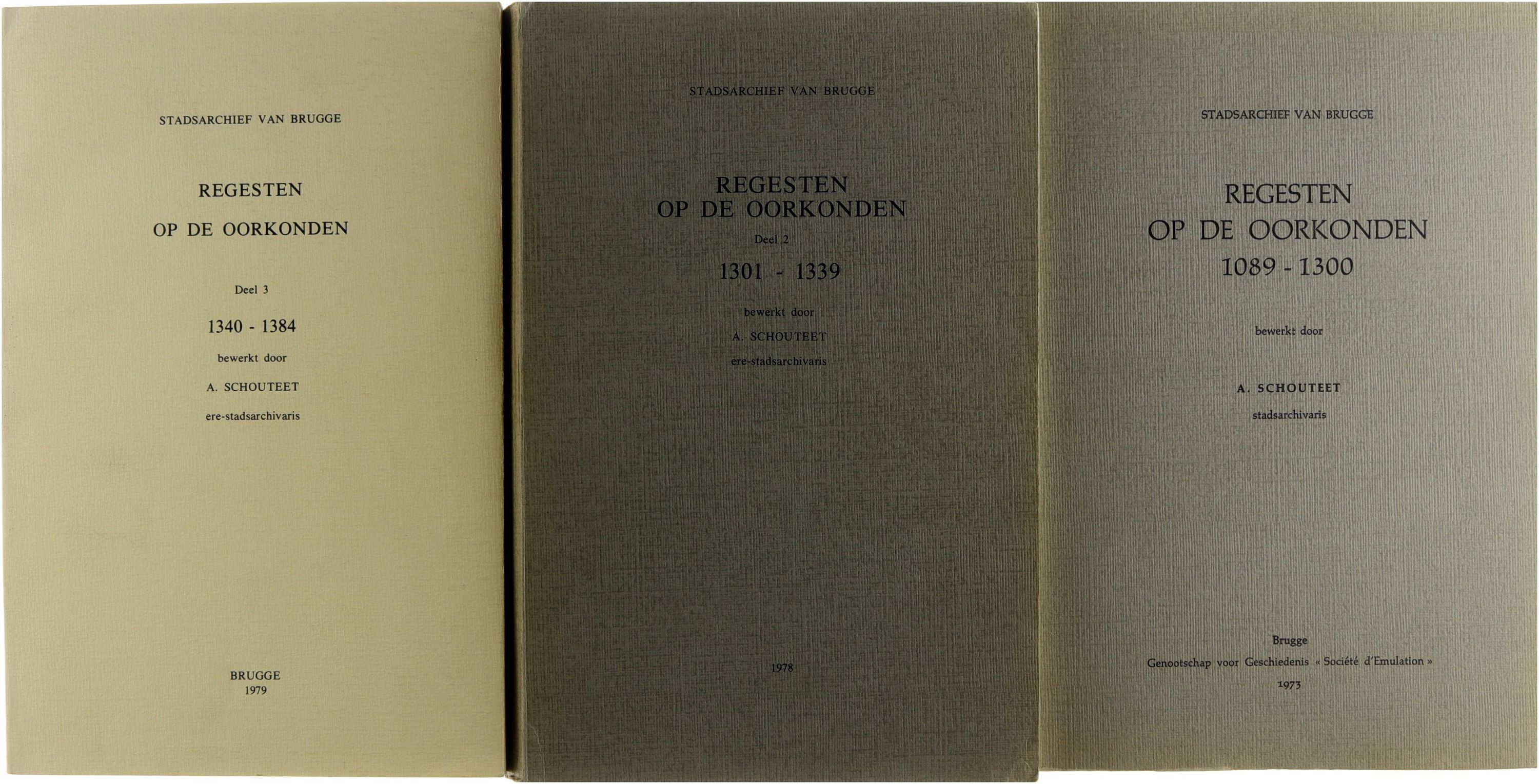 Stadsarchief van Brugge. Regesten op de oorkonden (3 delen). I. 1089-1300; II. 1301-1339; III. 1340-1384