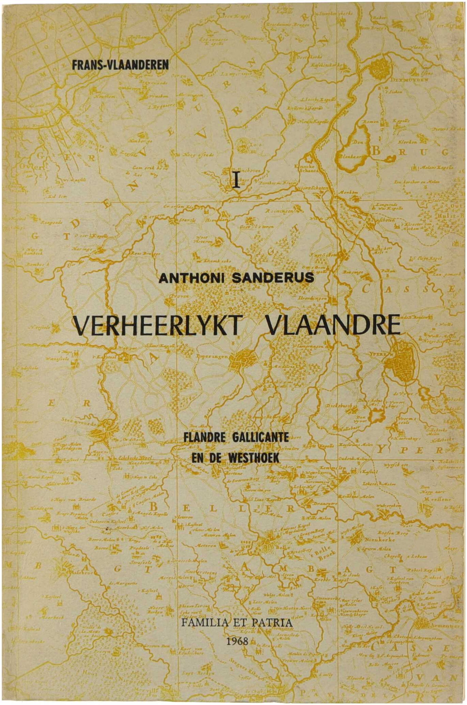 Dit boek, getiteld Verheerlykt Vlaandre, is een monumentaal historisch en topografisch standaardwerk over het graafschap Vlaanderen dat in 1735 verscheen als de Nederlandstalige bewerking van de zeventiende-eeuwse Flandria Illustrata door de kanunnik Antonius Sanderus. De tekst biedt een diepgaande beschrijving van de Vlaamse steden, dorpen, kastelen en adellijke huizen, aangevuld met biografische schetsen van vooraanstaande figuren, wetmatige kaders en een chronologische opvolging van de graven tot aan keizer Karel VI. De publicatie staat vooral bekend om haar rijke visuele documentatie met gedetailleerde kopergravures en kaarten, die een uniek beeld geven van de toenmalige architectuur en het landschap in het keizerlijke, Franse en Hollandse deel van Vlaanderen. Gezien het stempel van uitgeverij Familia et Patria betreft dit specifieke exemplaar een moderne facsimile-uitgave die dit historische bronmateriaal in de twintigste eeuw opnieuw toegankelijk maakte voor verzamelaars en heemkundigen.
