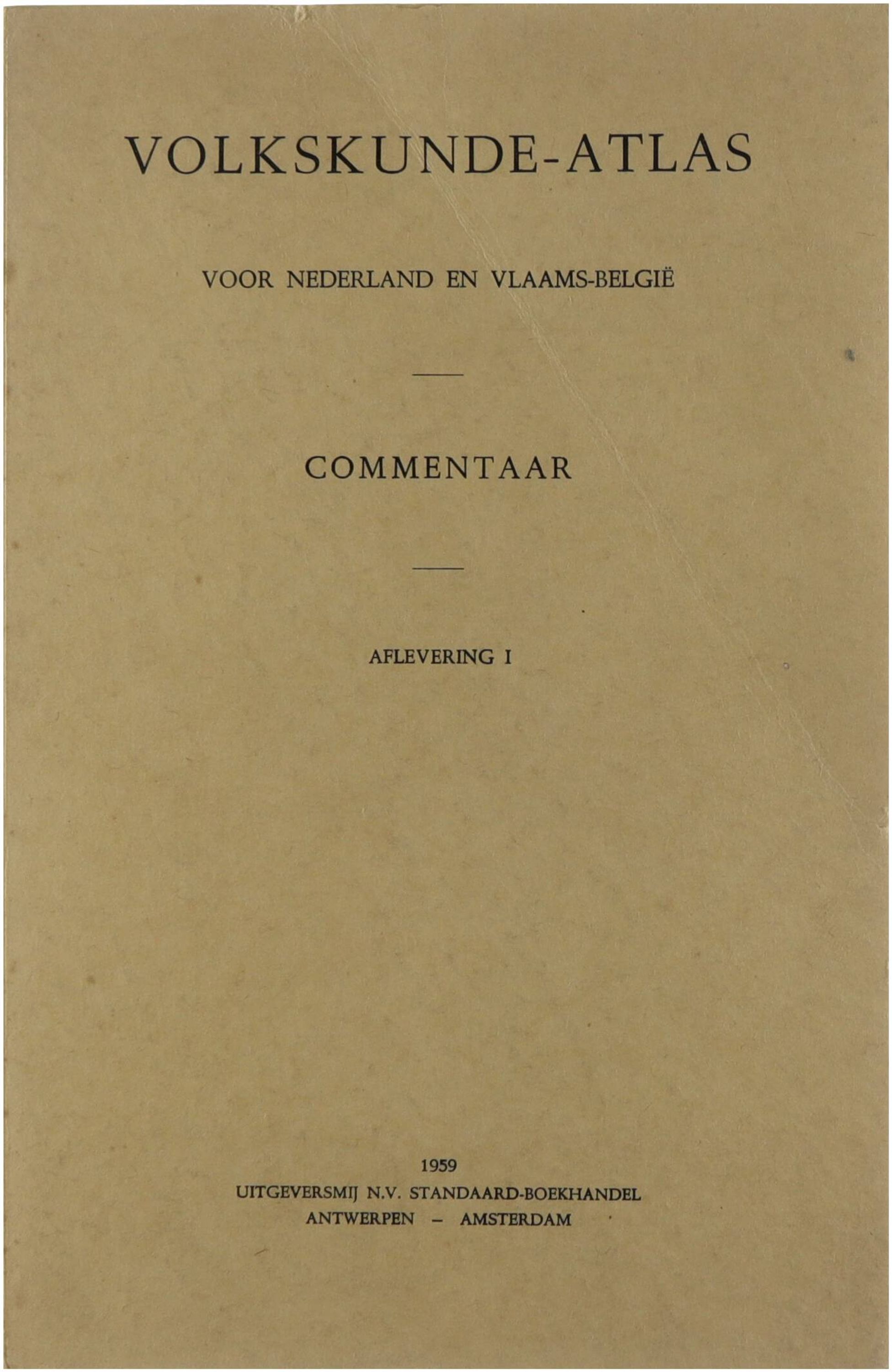 Volkskunde-atlas voor Nederland en Vlaams-België. Commentaar. Aflevering I